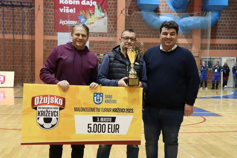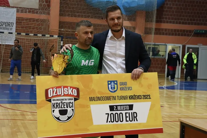 Ekipa Replaya osvojila je 23. Ožujsko malonogometni turnir Križevci 2023. i novčanu nagradu od 14 tisuća eura. U finalu su sinoć u sportskoj dvorani OŠ Ljudevita Modeca pobijedili ekipu MG Novi Pazar, koja je za drugo mjesto dobila nagradu od 7 tisuća eura. Treće mjesto i novčanu nagradu u iznosu od 5 tisuća eura osvojila je Pekarna Jagić. Vratarom turnira proglašen je Matia Caput iz ekipe Pekarne Jagić, najboljim strijelcem Hrvoje Bevanda iz ekipe Mystique dok je igračem turnira proglašen Filip Bojić iz ekipe Replay.