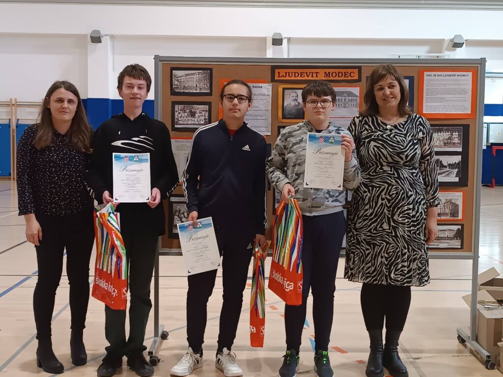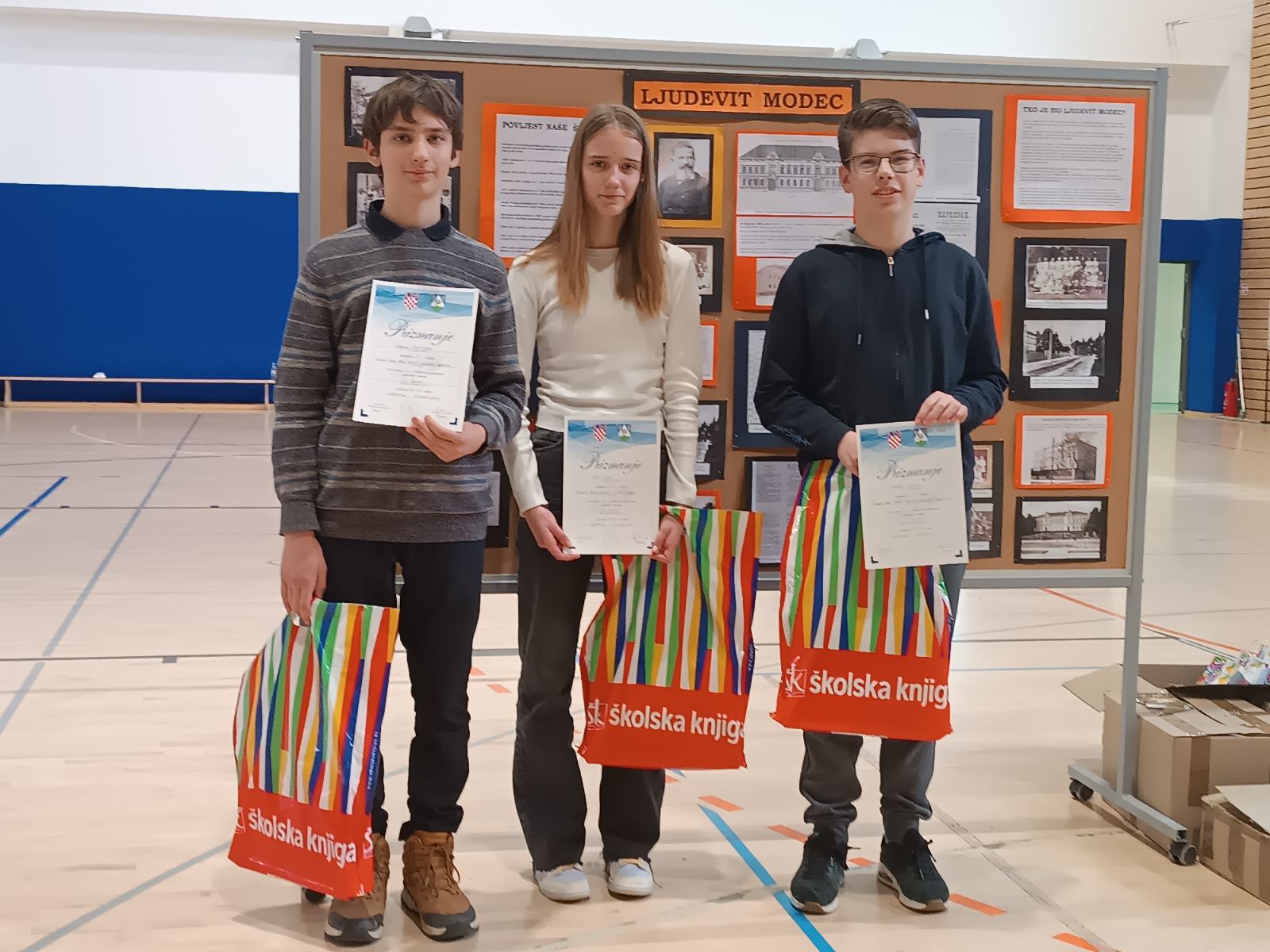 Među srednjoškolcima su se natjecali učenici Gimnazije Ivana Zakmardija Dijankovečkoga i u kategoriji prvih razreda četvrti je Marko Borovčak, a peti Filip Komarica. Magdalena Sever peta je među drugim razredima, dok su Marko Jukić i Filip Martić četvrti i peti među učenicima četvrtih razreda. Osnovnoškolcima su mentori Martina Iveković, Vedrana Rađa i Hrvoje Pajur, a gimnazijalcima Matej Bunta. Uoči natjecanja, učenici domaćini izveli su kratku predstavu kojom su goste iz drugih škola upoznali s učiteljem iz križevačke povijesti rođenim prije 180 godina – Ljudevitom Modecom, čije ime nosi njihova škola.