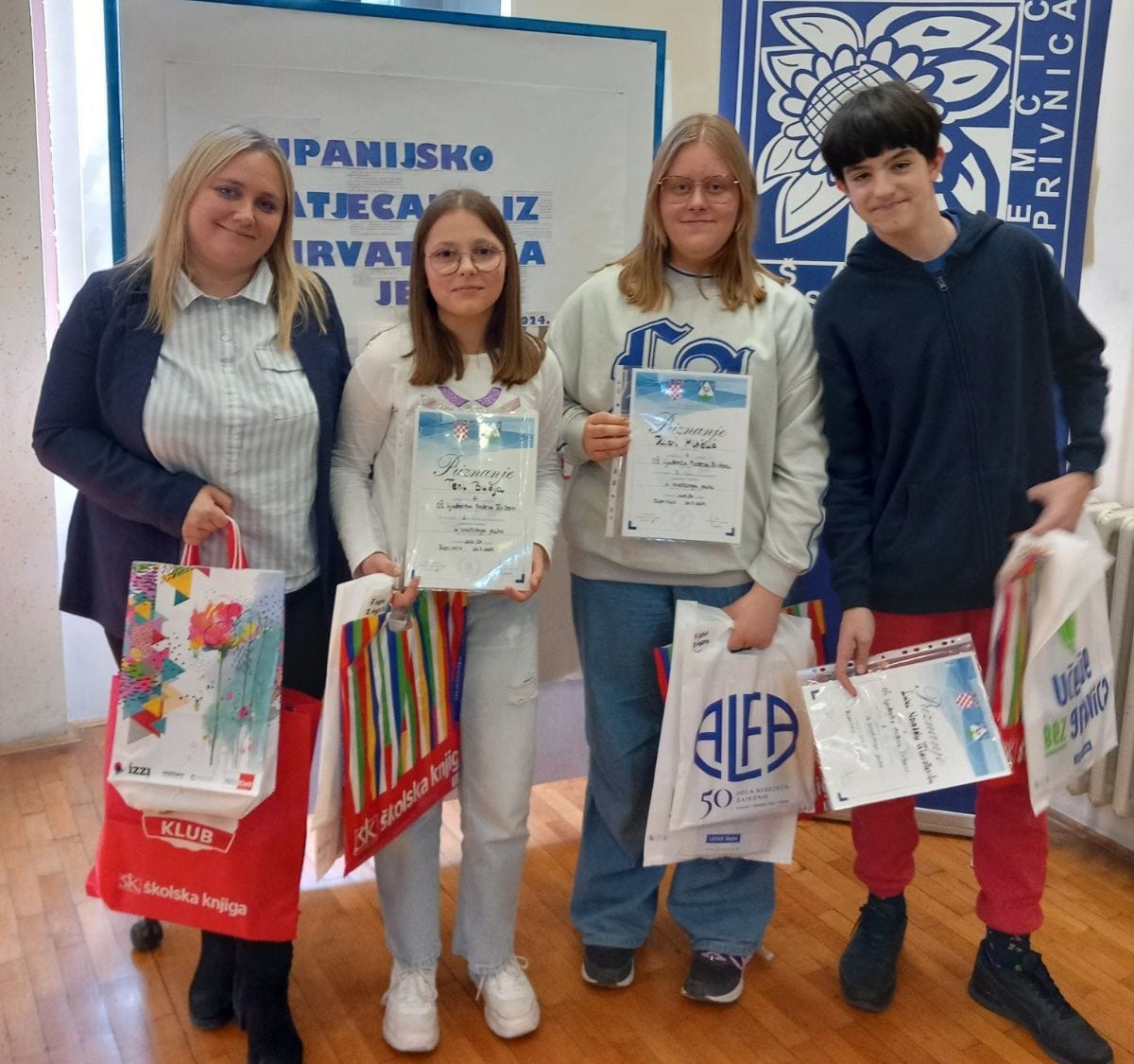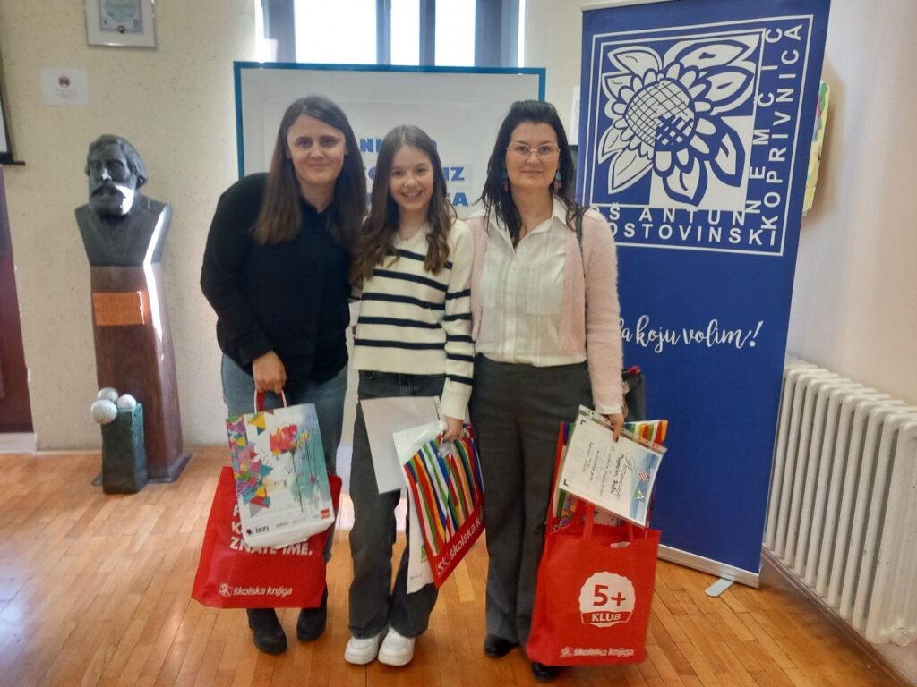 Vedrana je, inače, lani pobijedila na državnom Natjecanju iz hrvatskoga jezika uz mentoricu Ninu Drakulić, a ove godine je ostvarila 85 bodova od mogućih 90 pa se nadaju pozivu na još jedno državno natjecanje. U kategoriji 2. razreda druga je Lara Zidarić (mentorica Sanja Jelenak), a u kategoriji 3. razreda druga je Ana Čondić (mentorica Martina Jurišić). U kategoriji četvrtih razreda gimnazija nije imala natjecatelje.