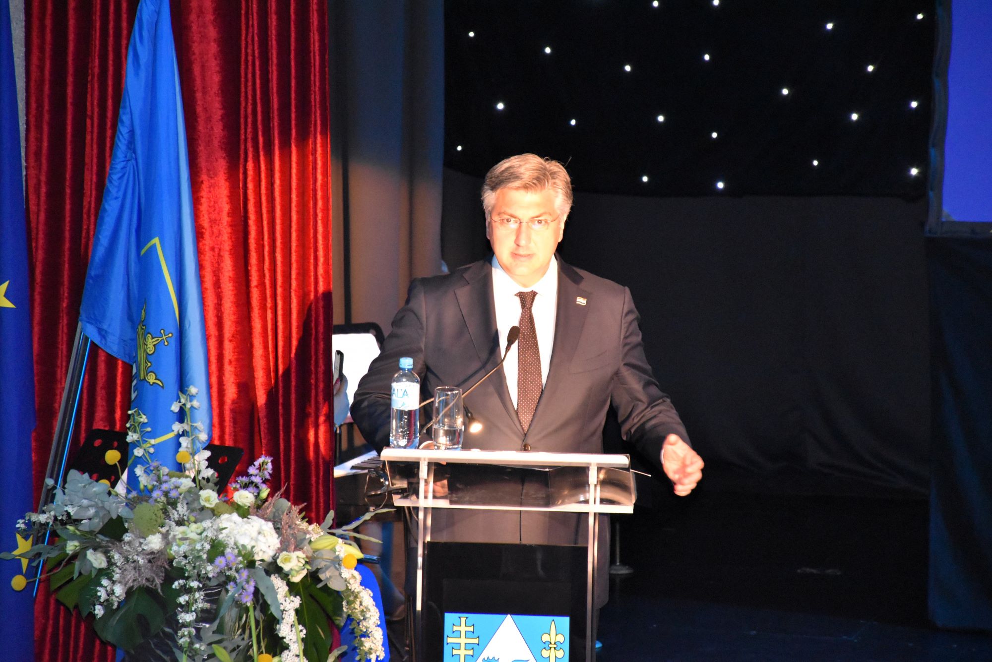 “Ekonomski rast naše županije jači je od prosjeka Hrvatske, to nam govori da smo važan kotačić u razvoju države. Nakon 40 godina obećanja brze ceste, radovi se sad moraju ubrzati“, poručio je Jakšić. Na svečanoj sjednici govorio je i potpredsjednik Vlade i ministar obrane Ivan Anušić, saborski zastupnik Darko Sobota i virovitičko-podravski župan Igor Andrović, svi redom kandidati na listi HDZ-a za četvrtu izbornu jedinicu. Svečanost je kasnila jer se čekalo premijera Andreja Plenkovića, no počelo se ipak bez njega. Kad je nakon sat i pol stigao, pred dvoranom Domoljub u kojoj se održavala sjednica dočekao ga je prosvjed Katarine Peović i Radničke fronte s transparentom na kojem je pisalo “Radnicima mrvice, a njima bogatstvo”, a odnosi se na nedavnu vijest o velikim primanjima menadžera Podravke. Uz Dan županije podijeljena su i priznanja zaslužnim građanima i organizacijama, među kojima je i nekoliko Križevčana.