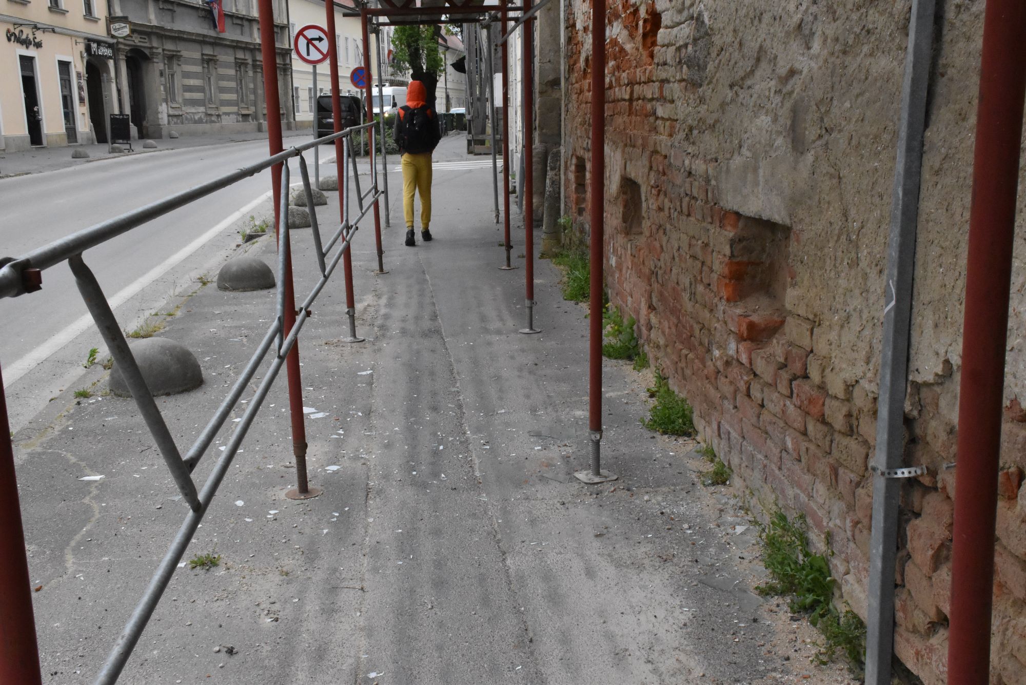 Samo srećom nitko nije stradao kad je vjetar razbio prozor na kući Oštrić s koje je staklo popadalo na pločnik, a “privremena” skela nije ga zaustavila. Srećom, jer onuda prolaze i učenici obližnje škole. Što se to mora dogoditi da se nešto učini i da se nađe rješenje za ruševinu u Zakmardijevoj 19 s kojom se, preko leđa i glava građana, loptaju Državni inspektorat, Grad i vlasnici kuće?