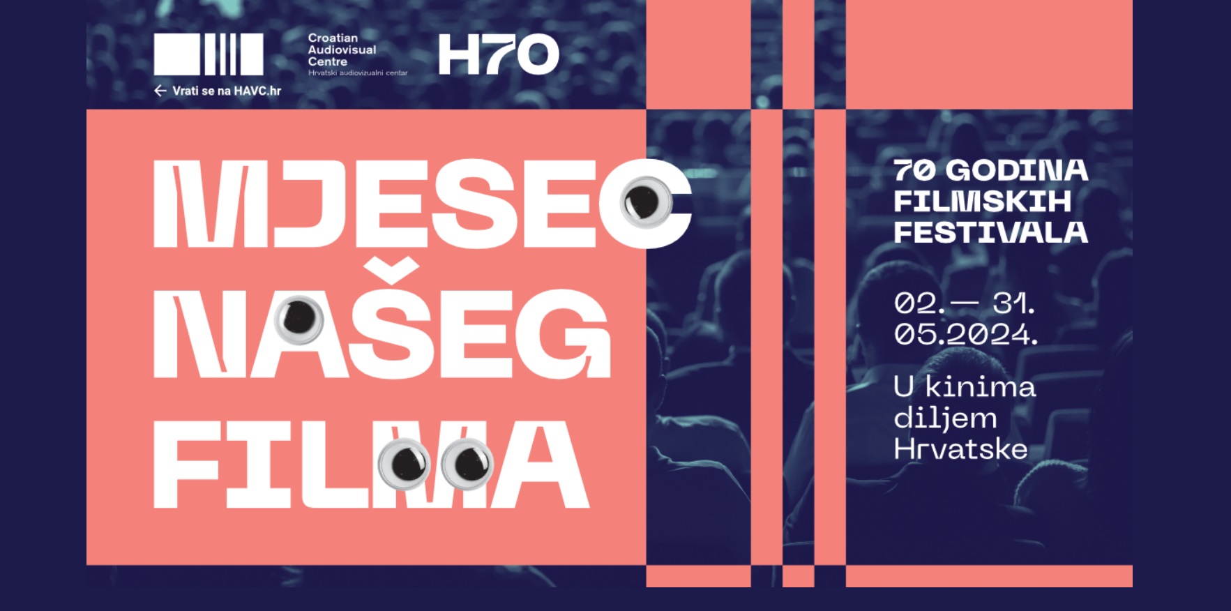 U kinima u pedesetak gradova u Hrvatskoj svibanj i ove godine postaje Mjesec našeg filma. Riječ je o programu koji se održava u kinima u sklopu Kino mreže (u njoj je i križevačko kino) gdje će se tijekom svibnja besplatno prikazati 70 filmova za 70 godina postojanja filmskih festivala. S podnaslovom 70 godina filmskih festivala, u fokusu ovogodišnjeg izdanja Mjeseca su festivali te filmovi koji su na njima bili prepoznati i nagrađivani.