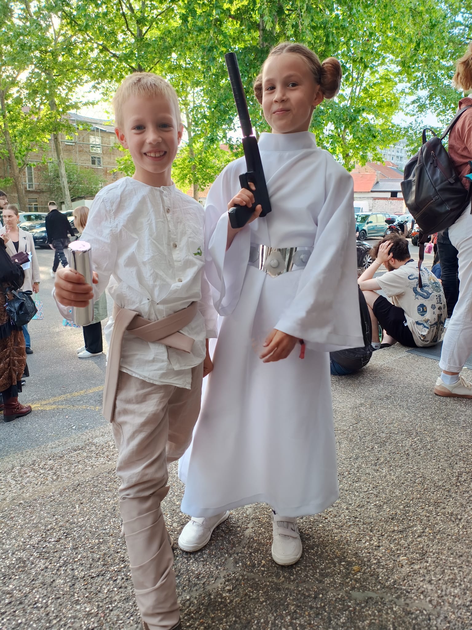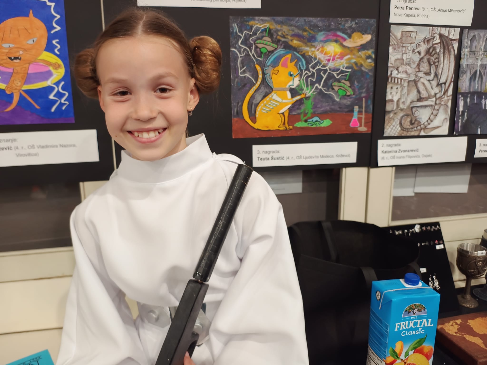 Među ljubitelje znanstvene fantastike Teuta je došla maskirana u Leiju Skywalker iz serijala Star Wars, a njen brat Vigo bio Luke Skywalker. Naravno da su na velikom sajmu fantastike bili atrakcija pa su ih posjetitelji zaustavljali i slikali se s njima. “Bilo je lijepo, na štandovima svakakvih čuda, raznih kostima. Oduševilo nas je to što je u odnosu na prošlu godinu puno natjecatelja došlo maskirano. Teuta je tamo bila ko profićka jer već svu proceduru zna. Tko zna, možda dogodine dođemo opet“, rekla nam je njena mama Ana.