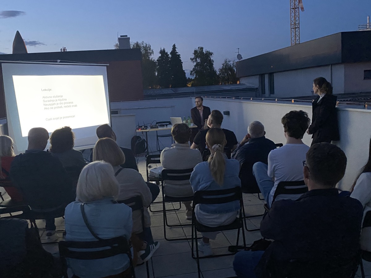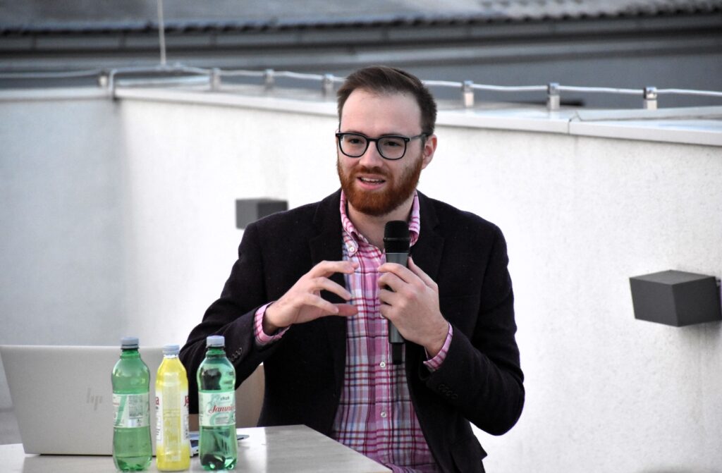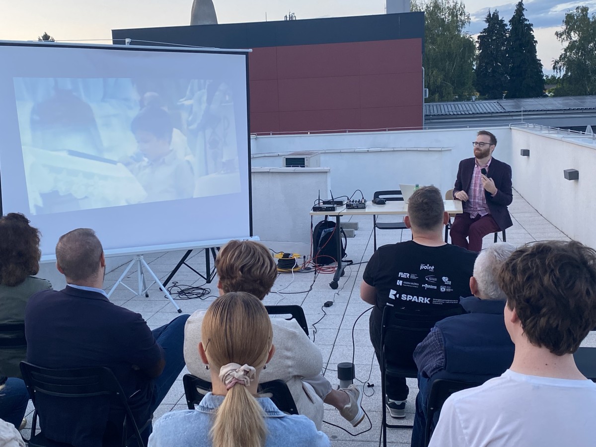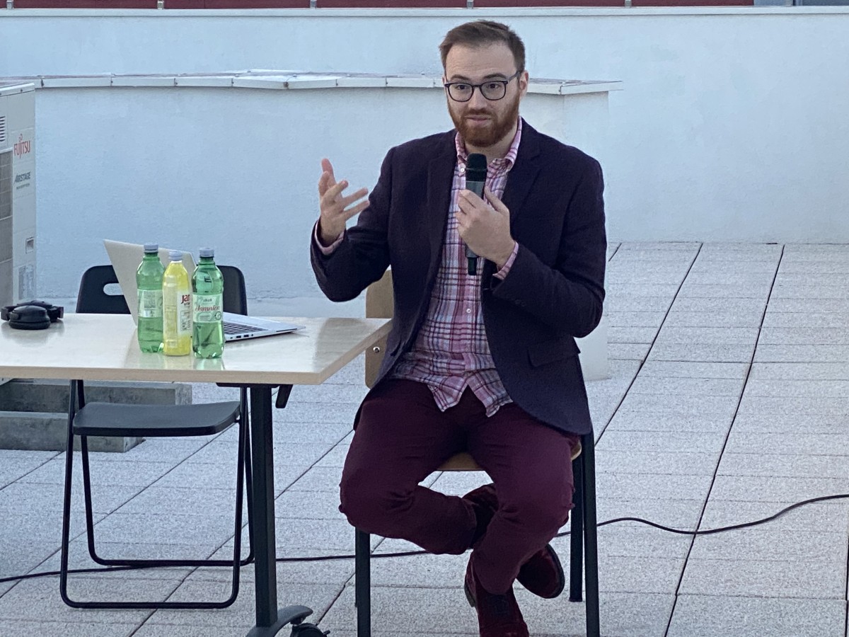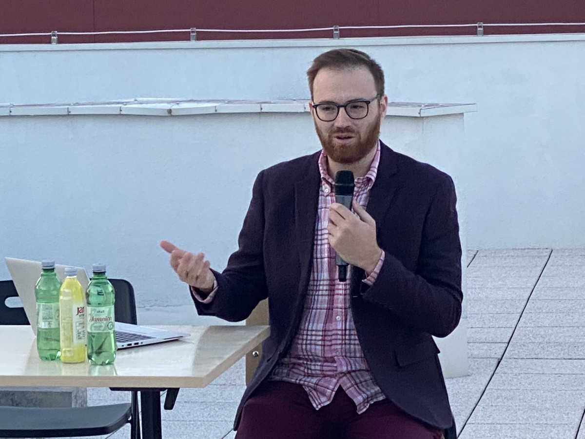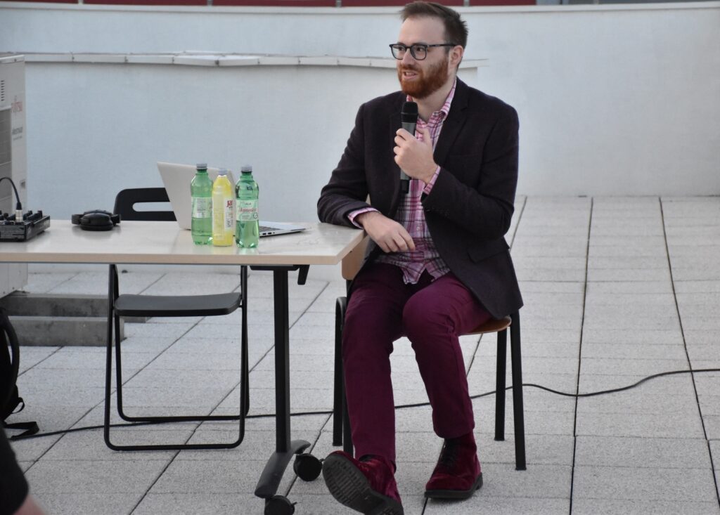 U dinamičnom, slikovitom i vrlo nadahnutom predavanju, za koji je uvod dala članica udruge P.O.I.N.T. Sonja Mrnjavčić, Martinčić je govorio o odlasku u Englesku sa 16 godina zahvaljujući stipendiji Foruma za slobodu odgoja, maturiranju i upisu fakulteta, poziciji predavača na kolegijima drame i kazališnih studija, dolasku na novi fakultet, držanju seminara brucošima kao asistent, predstavljanju svih postdiplomskih studenata na fakultetu, početku istraživanja i pisanju doktorske disertacije, koju trenutno završava na Sveučilištu u Exeteru.
