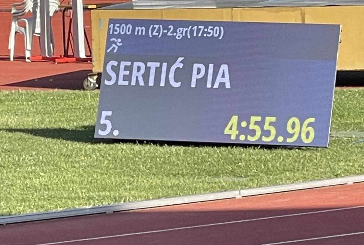 Članica AK Križevci Pia Sertić (kadetkinja) osvojila je danas odlično peto mjesto u utrci na 1500 metara na Kupu i ekipnom prvenstvu Hrvatske za juniore i juniorke u Zagrebu. Istrčala je osobni rekord, 4:55,96. Prvi put je istrčala dionicu za manje od pet minuta. Njezin trener je Branko Zorko, proslavljeni srednjeprugaš i peterostruki olimpijac u toj disciplini. Pia je, ujedno, osvojila 8 bodova u Kupu za AK Križevci. Sutra će nastupiti Ema Brezović i Zona Opsenica na 200 metara i Matej Puljak na 800 metara.