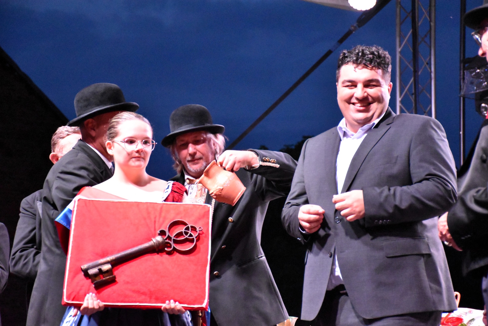 Po Križevačkim štatutima, uz bezbroj zdravica veselom društvu i pajdašiji, ljepšem spolu i domovini, sinoć su se još jednom, pedeset šesti put, pomirili kalnički šljivari s križevačkim purgerima. Jedni su dali vola, drugi vino i dogovorili veselicu na kojoj će brakom okruniti navodnu ljubav purgerice Tilčike i kalničkog fakina Julčeka, ne bi li zbližili dvije varoši. Na spelanciju se, kao redatelj, vratio Adam Končić, a glumci su sjajno odradili svoje role. U točno sat vremena ispričali su dobro poznatu legendu obilato začinjenu zdravicama, promovirajući Križevačke štatute, kulturu ponašanja u društvu i tradicionalne napjeve uz druženja. Osim toga, varoški sudac je preuzeo i ključeve grada pa se politiku i političare u Križevcima tri dana neće spominjati.