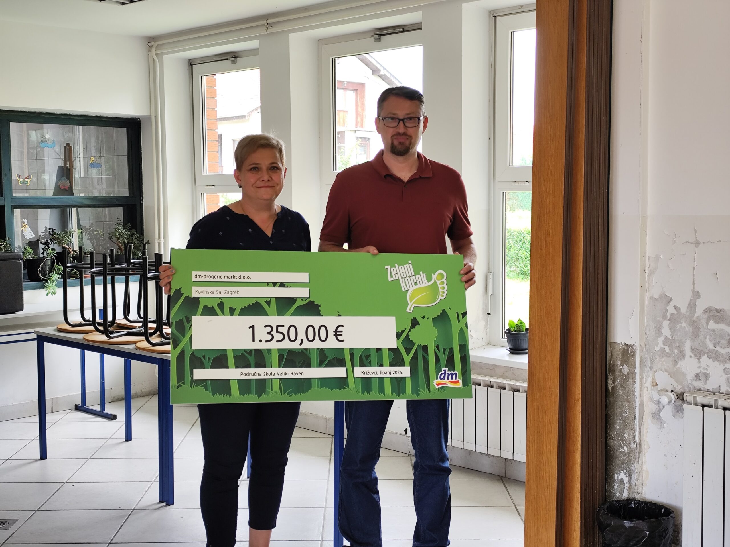 Učenici Područne škole Veliki Raven prikupili su više od dvije tone papira i osvojili nagradu za doprinos zaštiti okoliša u dm-ovoj akciji Zeleni korak. Ovo im je druga godina zaredom da su se plasirali među najbolje mlade ekologe u Hrvatskoj i to su ostvarili prikupljanjem 2.260 kilograma starog papira. Jučer su dobili i novčanu nagradu od 1.350 eura koju im je dm uručio za doprinos zaštiti okoliša.