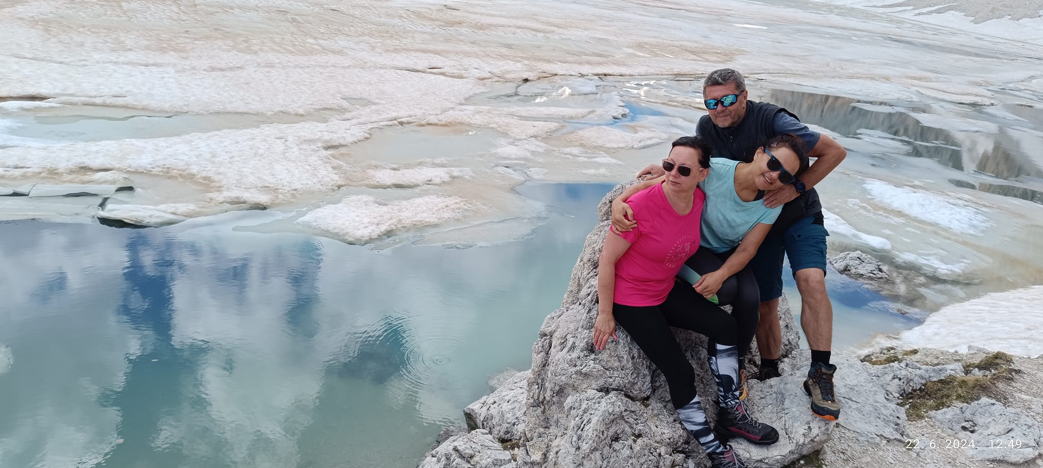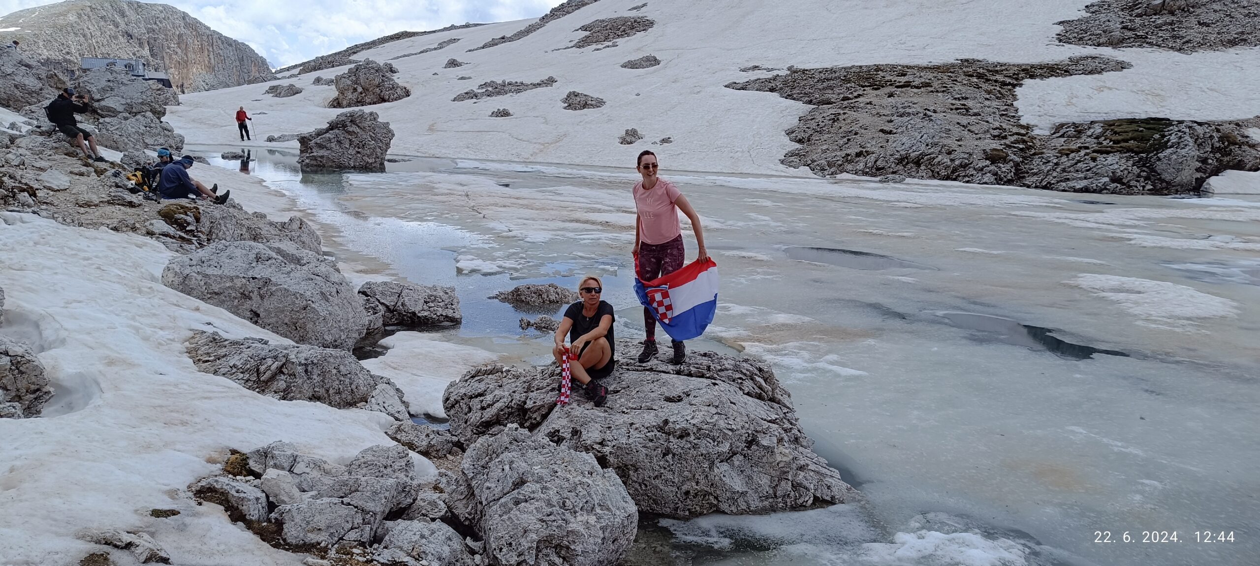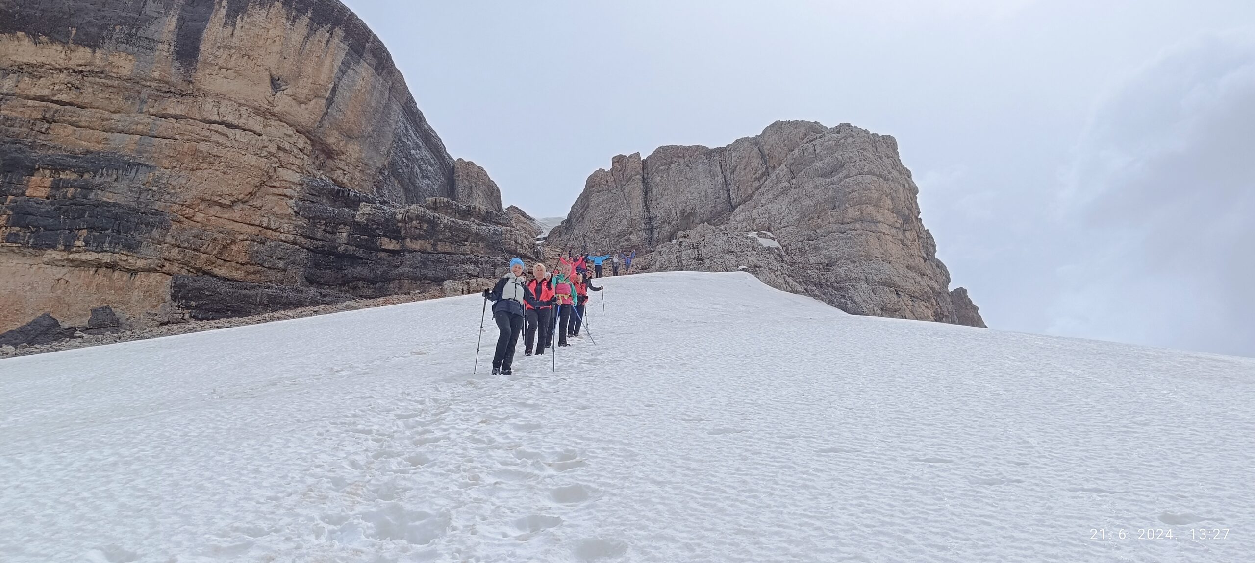 Već prvi dan osvojili su vrh Piz Boe na 3152 mnv do kojeg su se, dijelom puta, uspinjali žičarom, i ukupno u šest sati prehodali oko 8 kilometara. “Dolje zeleno, a od žičare do vrha 3152 m snijeg, sunce, vjetar i na trenutke sitna kišica. Temperatura je gore bila oko 5 stupnjeva“, opisuje Zlatko Mustić. Godišnja doba izmjenjivala su se i drugi dan kad su hodali devet sati i prošli oko 14 kilometara do ledenjačkog jezera Lago di Antermoia na 2516 mnv. Do 2000 m uživali su zelenom proljeću, no već stotinjak metara iznad dočekao ih je snijeg i jezero koje se tek počelo otapati od leda.