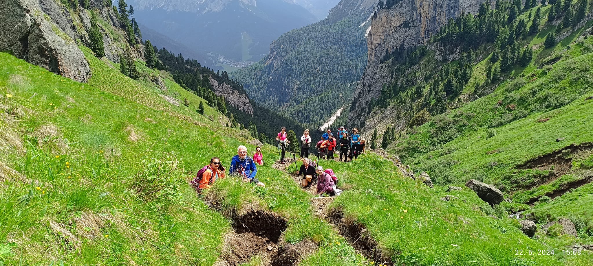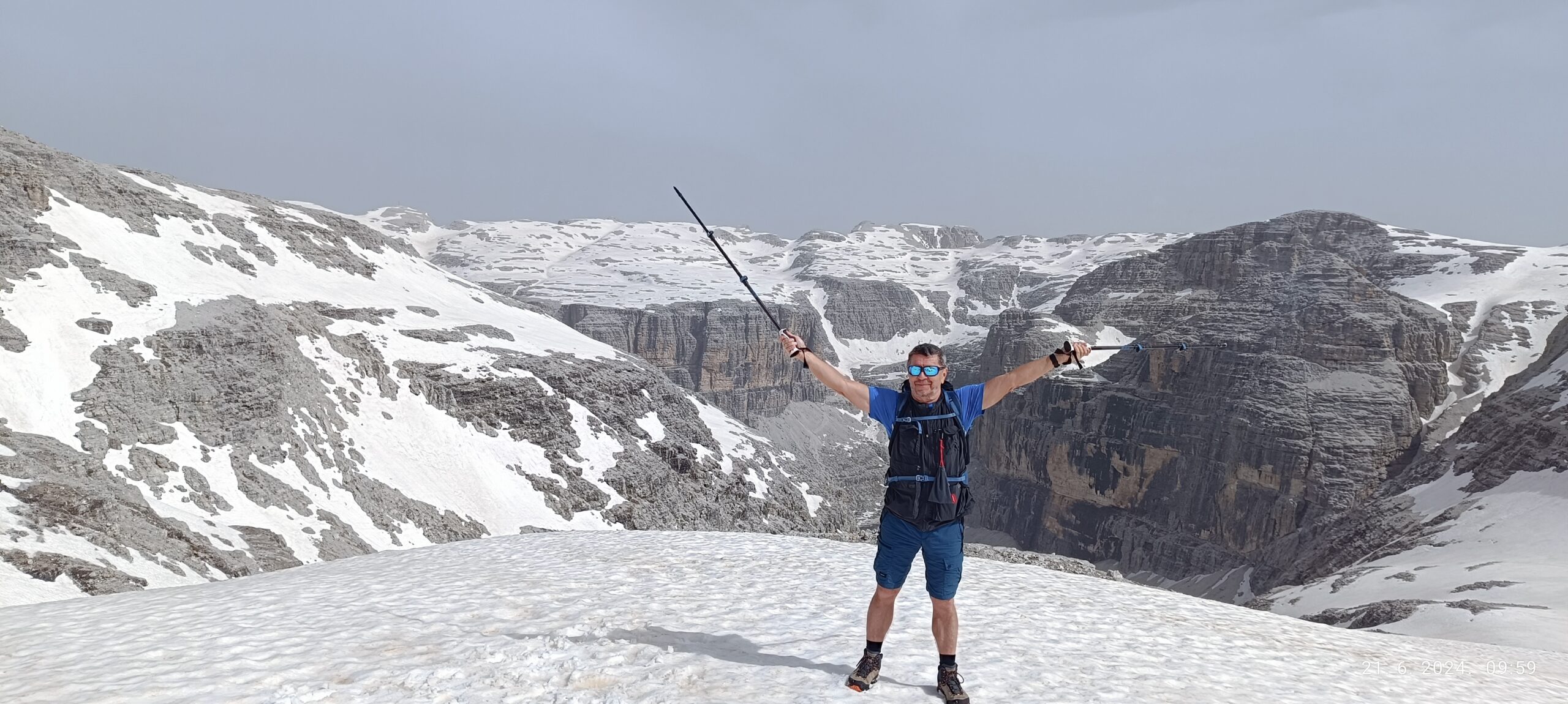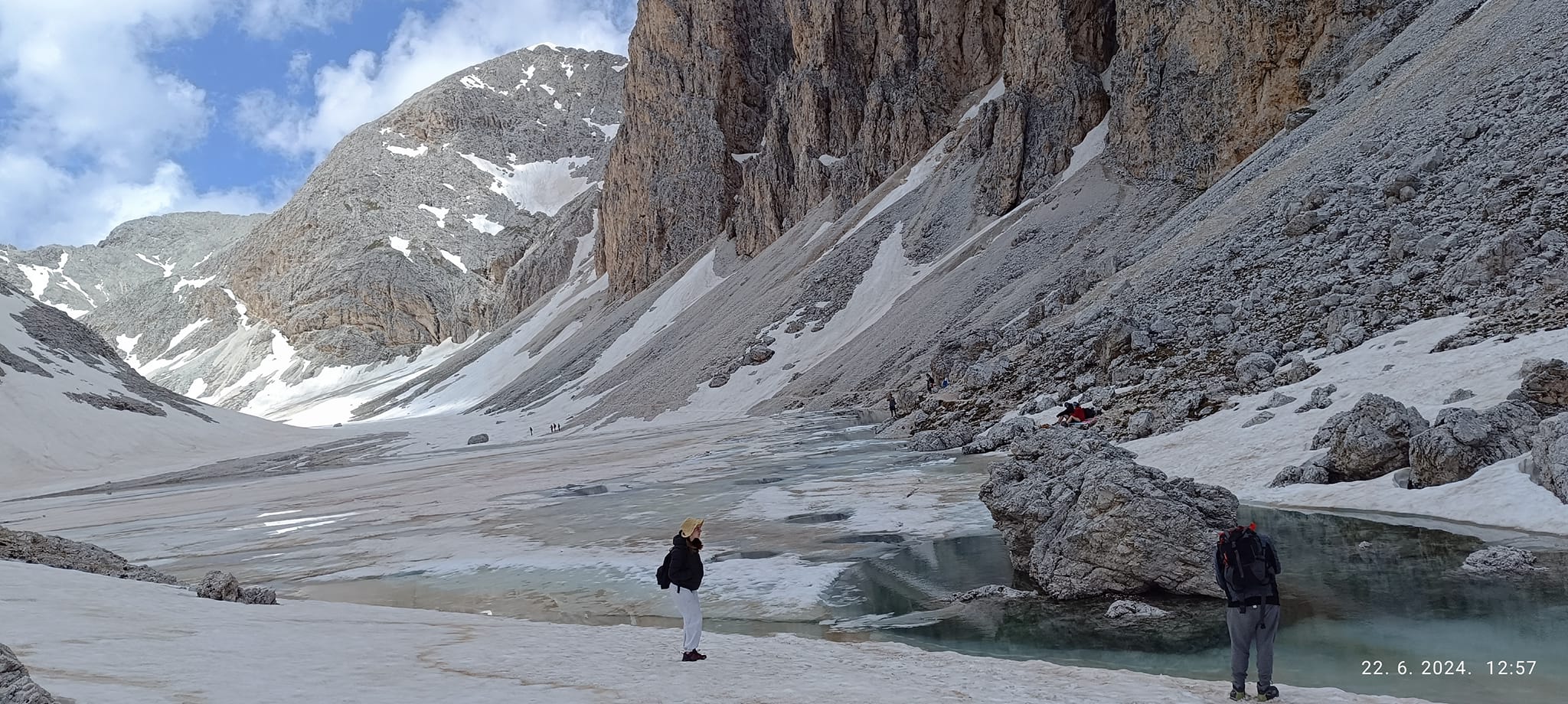 Već prvi dan osvojili su vrh Piz Boe na 3152 mnv do kojeg su se, dijelom puta, uspinjali žičarom, i ukupno u šest sati prehodali oko 8 kilometara. “Dolje zeleno, a od žičare do vrha 3152 m snijeg, sunce, vjetar i na trenutke sitna kišica. Temperatura je gore bila oko 5 stupnjeva“, opisuje Zlatko Mustić. Godišnja doba izmjenjivala su se i drugi dan kad su hodali devet sati i prošli oko 14 kilometara do ledenjačkog jezera Lago di Antermoia na 2516 mnv. Do 2000 m uživali su zelenom proljeću, no već stotinjak metara iznad dočekao ih je snijeg i jezero koje se tek počelo otapati od leda.