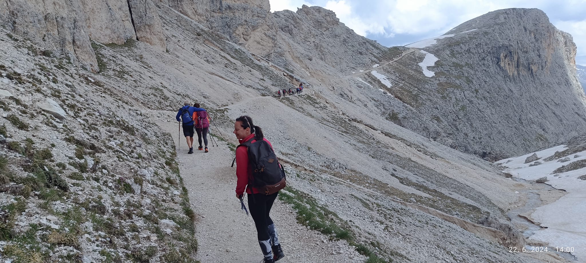 Planinarskoj ekipi pridružili su se ovaj put i novi putnici, a među njima je bila Katarina Zidarić. Ljepota Dolomita ju je privlačila oduvijek i sad je, na nagovor prijateljice, odlučila poći na izlet s PD Kalnik.