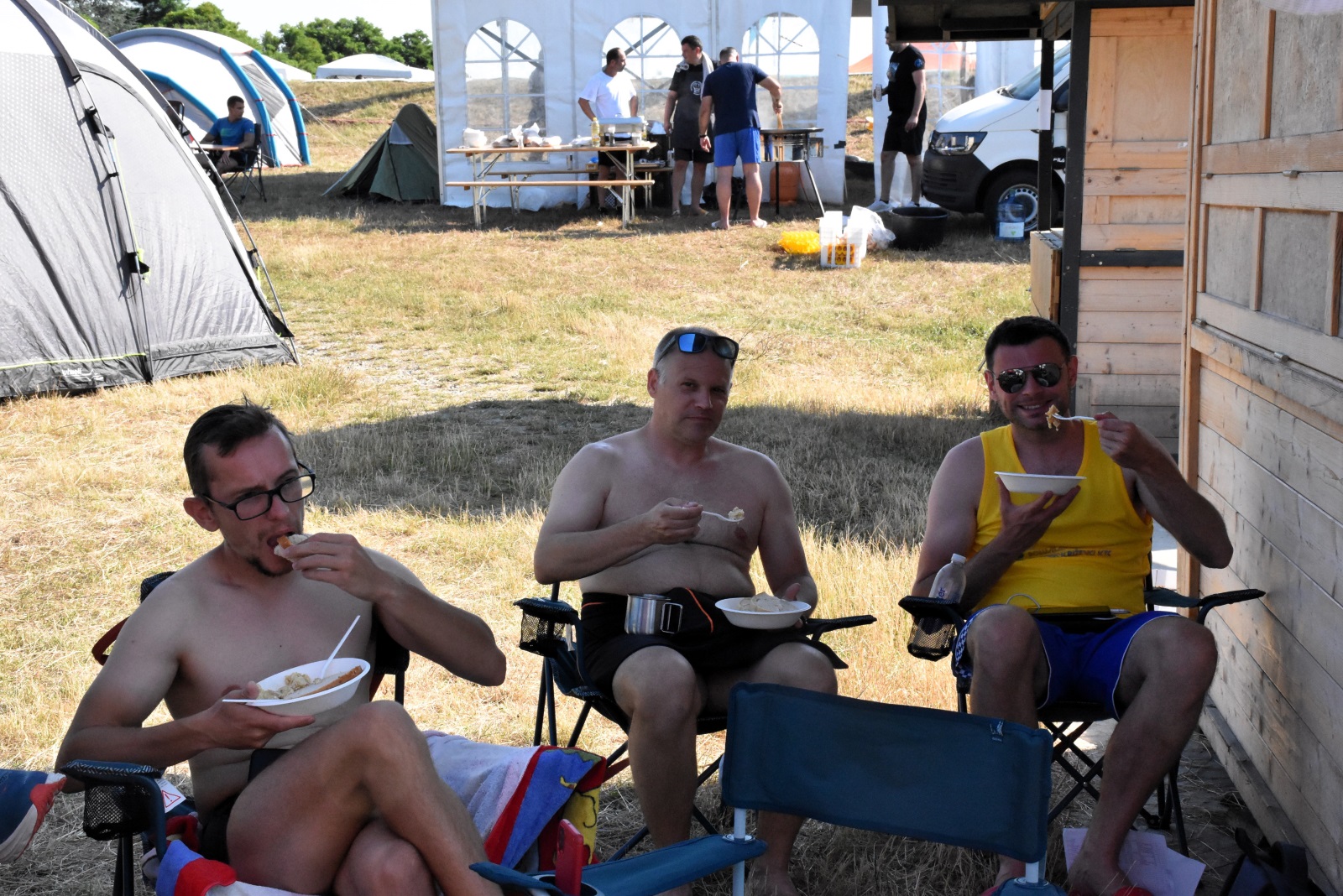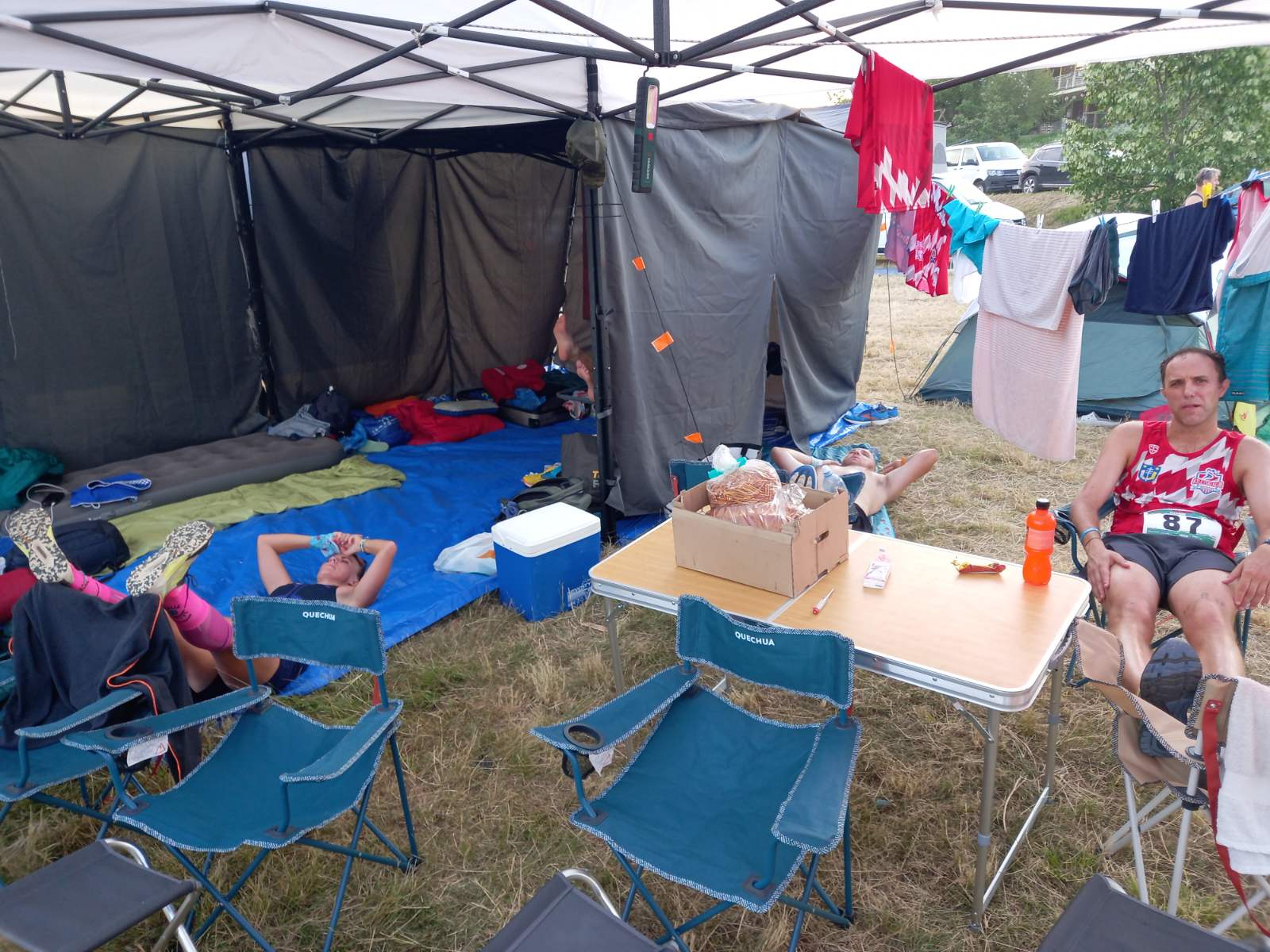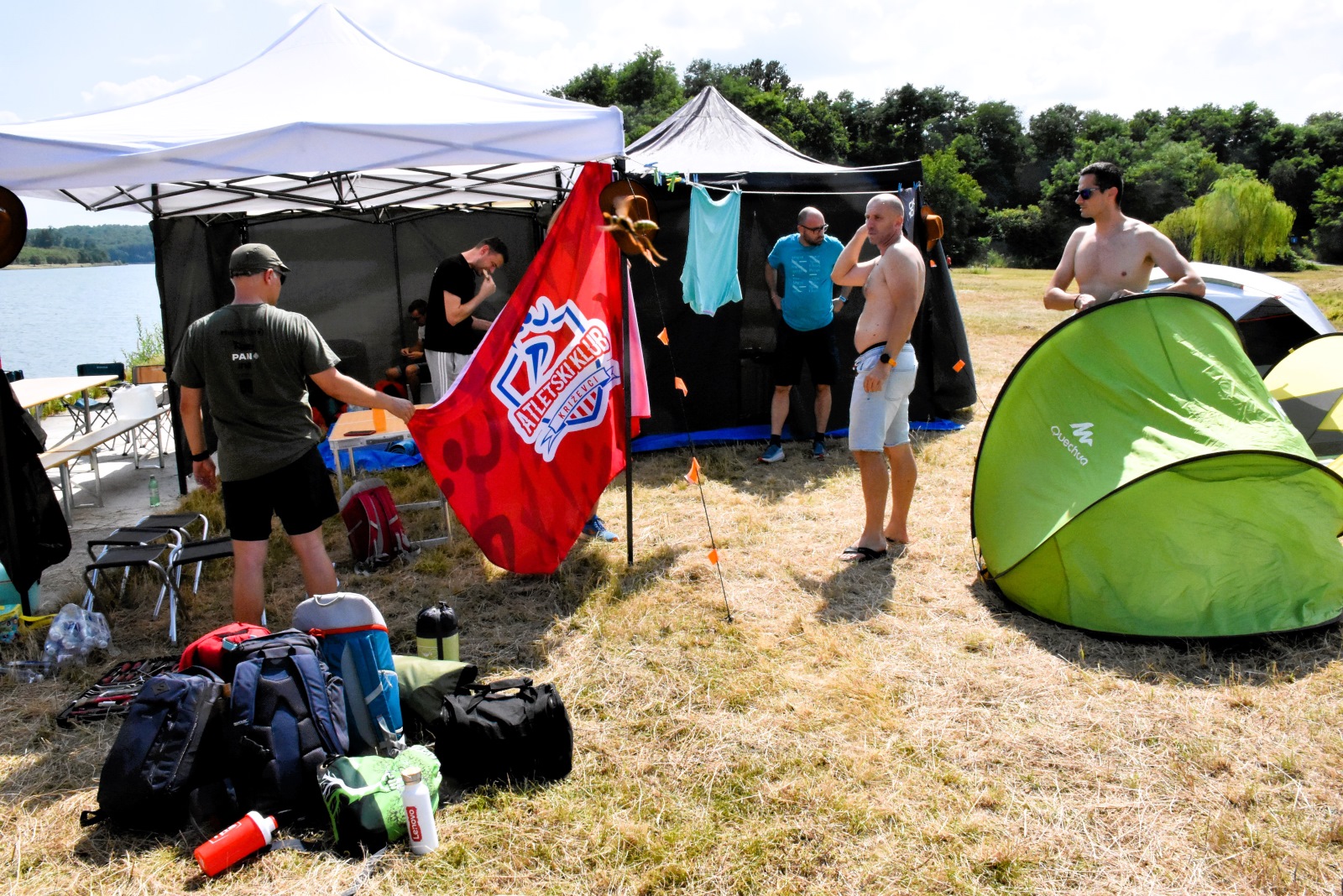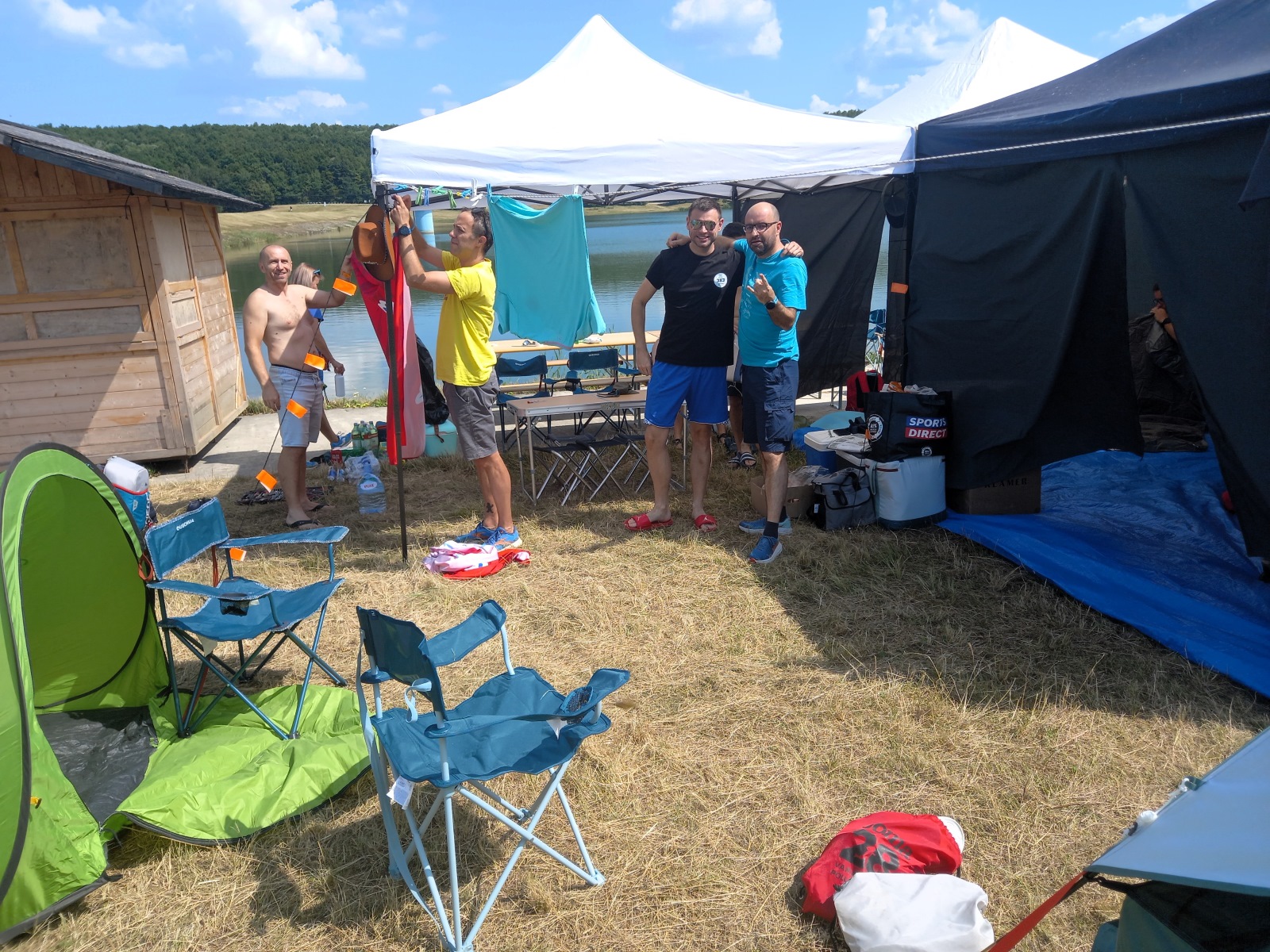 Nitko se nije žalio ni na vrućinu ni na vlagu. Za prve krugove trebali su sunčane naočale, a već na četvrtom su trčali s naglavnim svjetiljkama koje su cijelu noć svijetlile oko jezera. U logoru koji su podigli uz obalu jezera blizu startne linije, podržavali su jedni druge, pomagali vraćati startne brojeve na svaku suhu majicu koju bi u kratkoj pauzi uspjeli promijeniti, podsjećali se međusobno da treba nešto i pojesti, nadoknaditi izgubljenu tekućinu, nadopuniti bateriju na satu… Iako je svaki od njih sam odradio svoje kilometre, nama promatračima djelovali su kao dobro uhodani tim u kojem je svaki kotačić imao ulogu i bio važan za zajednički uspjeh. Križevačka dugoprugaška družina nanizala je respektabilan broj kilometara, čak 450. Višak i Novosel su završili po 12 krugova, Jukica 11, Mušlek 8, Brumen, Lukinović, Mesić i Pavliček 6 i svi su stali kad je trebalo. Mogli su još, ali nema potrebe, pametnije je (naučili su već) kući se vratiti bez ozljeda i s planovima za novu trku.