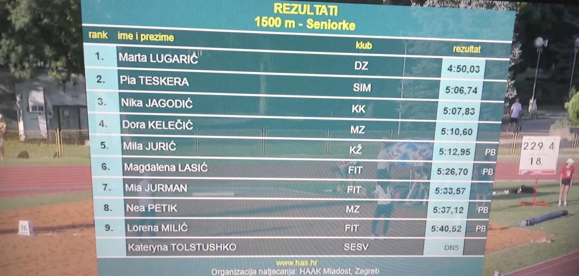 Članica AK Križevci Mila Jurić nastupila je u subotu u utrci seniorki na 1500 metara na atletskom mitingu HAAK Mladost u Zagrebu. Mila je bila najmlađa sudionica utrke (2012. godište) i osvojila je odlično peto mjesto s osobnim rekordom, 5:12,95. Sutra će nastupiti njezin brat Pavo u utrci na 3000 metara.