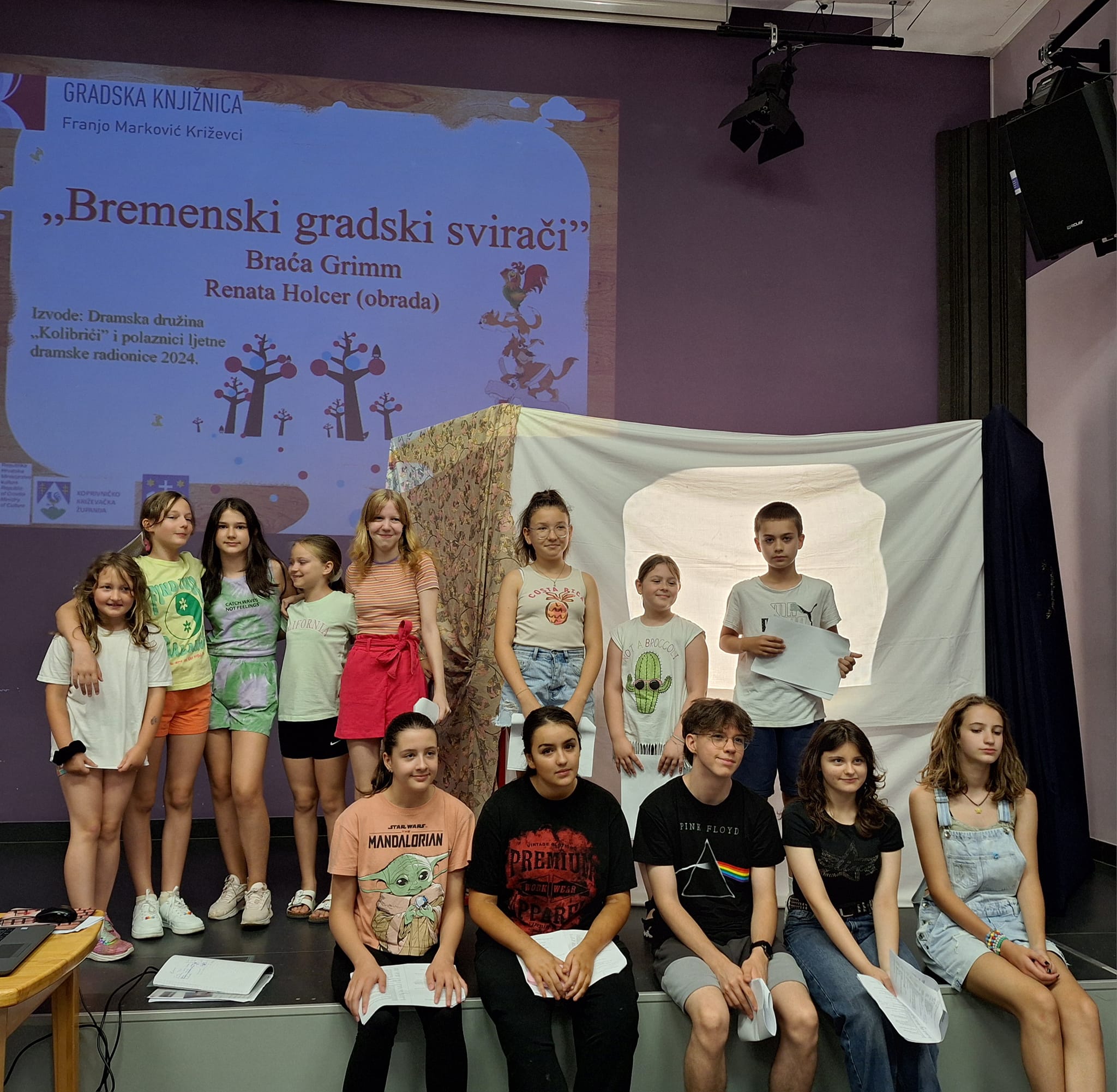 Nakon tri održane radionice po vodstvom Sanje Marković, za ponedjeljak, 29. srpnja najavljuju premijeru igrokaza “Bremenski gradski svirači” braće Grimm i “Crtice iz gradskog života” Nade Zidar-Bogadi. Premijere će se održati u multimedijskoj dvorani Gradske knjižnice “Franjo Marković” s početkom u 18 sati, a ulazak je slobodan.
