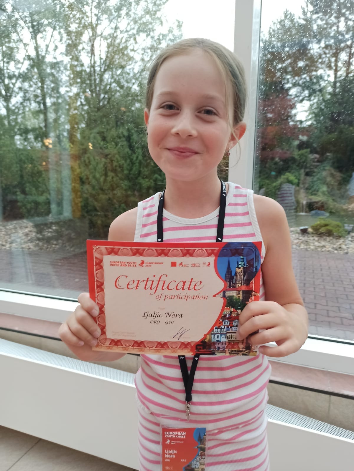 Nora Ljaljić osvojila je 33. mjesto u kategoriji djevojčica do 10 godina na Europskom prvenstvu za mlade u ubrzanom šahu u Pragu u Češkoj. U posljednjem kolu jučer je poražena od sunarodnjakinje Ive Vouk, a u devet kola u dva dana osvojila je četiri boda. Njen brat Bruno u zadnjem je kolu pobijedio suparnika iz Češke i s 4 boda osvojio 40. mjesto kod dječaka do 8 godina.