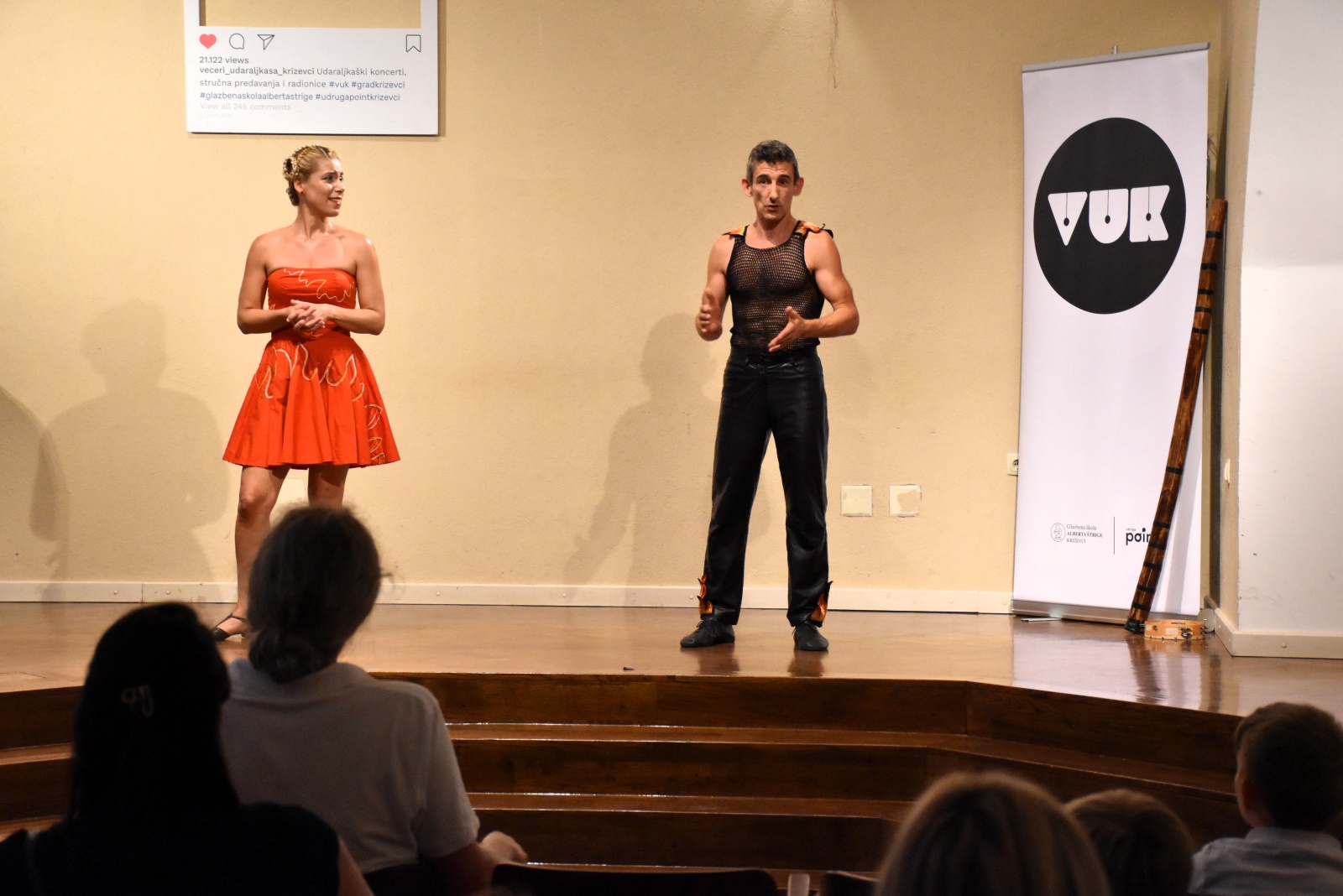 Sjajnim nastupom dueta Alice in WonderBand sinoć u koncertnoj dvorani Glazbene škole Alberta Štrige, otvorene su 14. Večeri udaraljkaša u Križevcima. Glazbenici Ana Vrbaški i Marko Dinjaški su energično i moćno, a istovremeno emotivno i uvjerljivo, izveli četrnaest skladbi na desetak jezika i spojili nepravilne ritmove Balkana s glazbom tijela i tjelesnim udaraljkama.