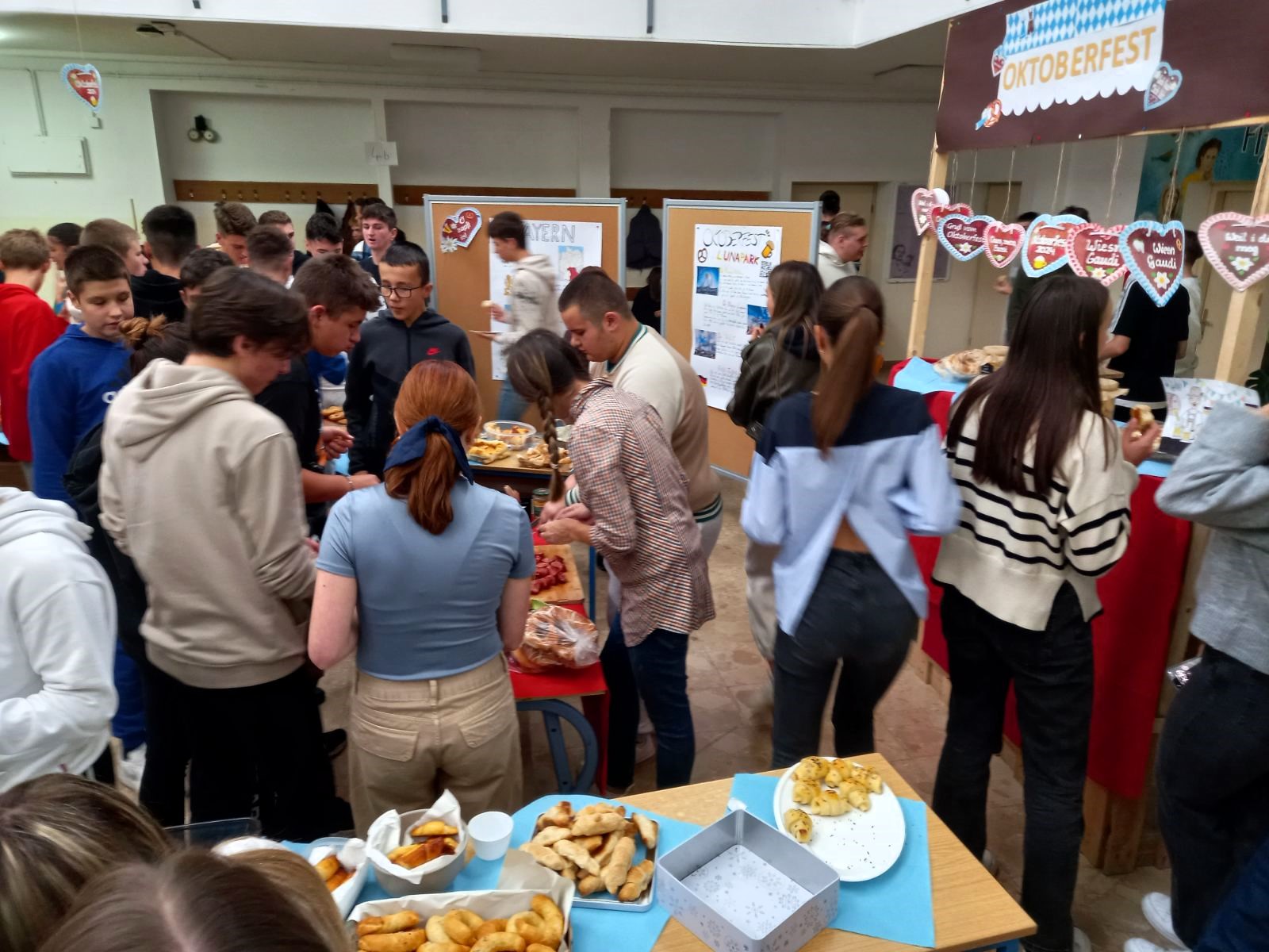 Bezalkoholni pandan bavarskoj pučkoj fešti ove je godine u našoj gimnaziji organiziran prvi put s ciljem upoznavanja učenika s tradicijom i običajima zemalja njemačkog govornog područja. Budući da je ove godine u Münchenu održan već 189. Oktoberfest, učenici su prethodno na nastavi učili o njegovoj povijesti, te izrađivali plakate i kvizove za druge učenike. Pod vodstvom nastavnice njemačkog jezika, Martine Koritić Wytwer, za kraj tjedna pripremljena je zakuska za sve učenike škole u čijoj pripremi su sudjelovali škola i učenici koji uče njemački jezik kao prvi ili drugi strani jezika.