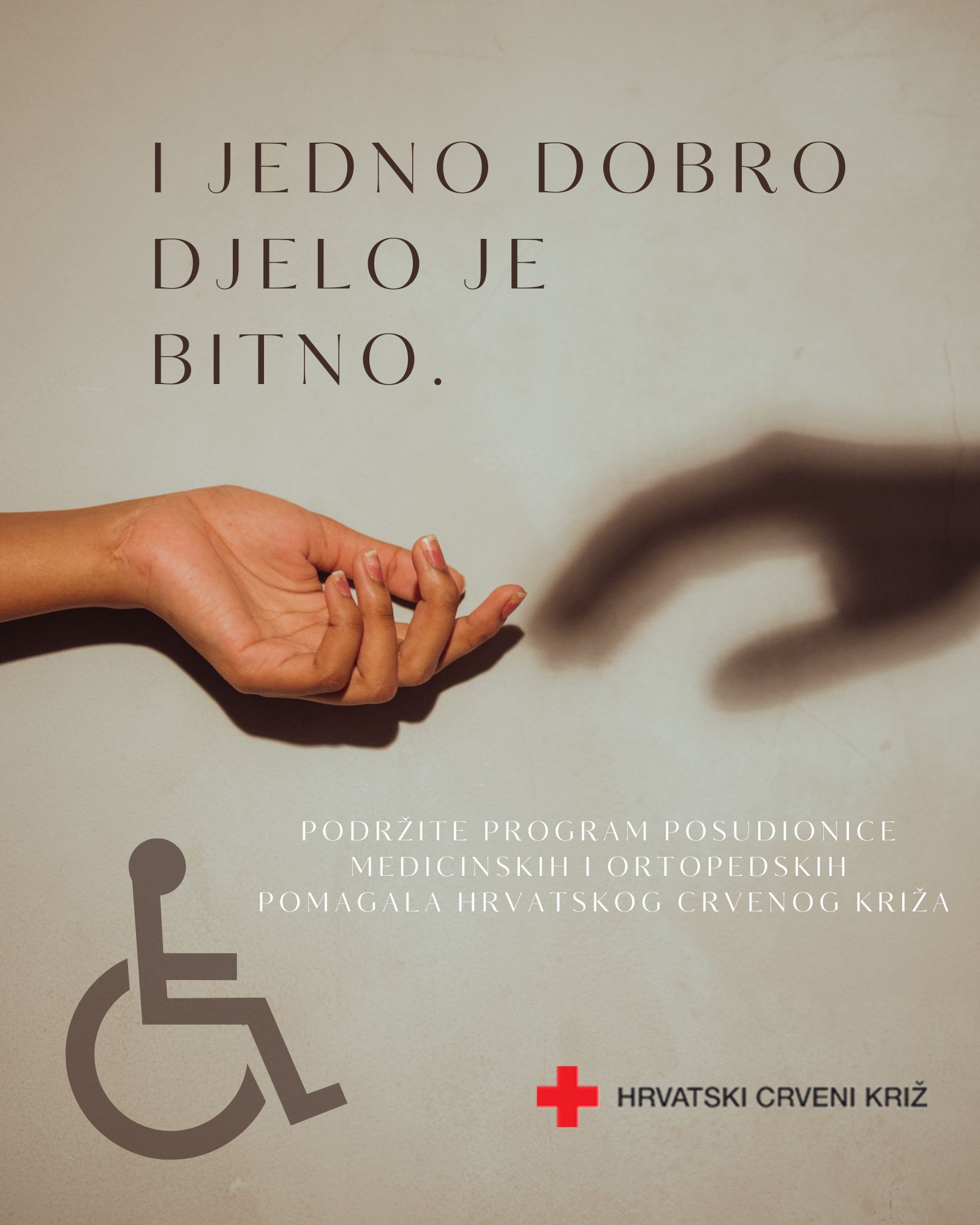 Hrvatski Crveni križ poziva građane da podrže program Posudionice medicinskih i ortopedskih pomagala. “Ako posjedujete ispravna pomagala poput hodalica, štaka, kolica, kreveta ili drugih medicinskih pomagala koja vam više ne trebaju, darujte ih onima kojima mogu poboljšati život. Pomozite ljudima u potrebi da lakše žive i budu samostalniji“, pozivaju iz Crvenog križa.