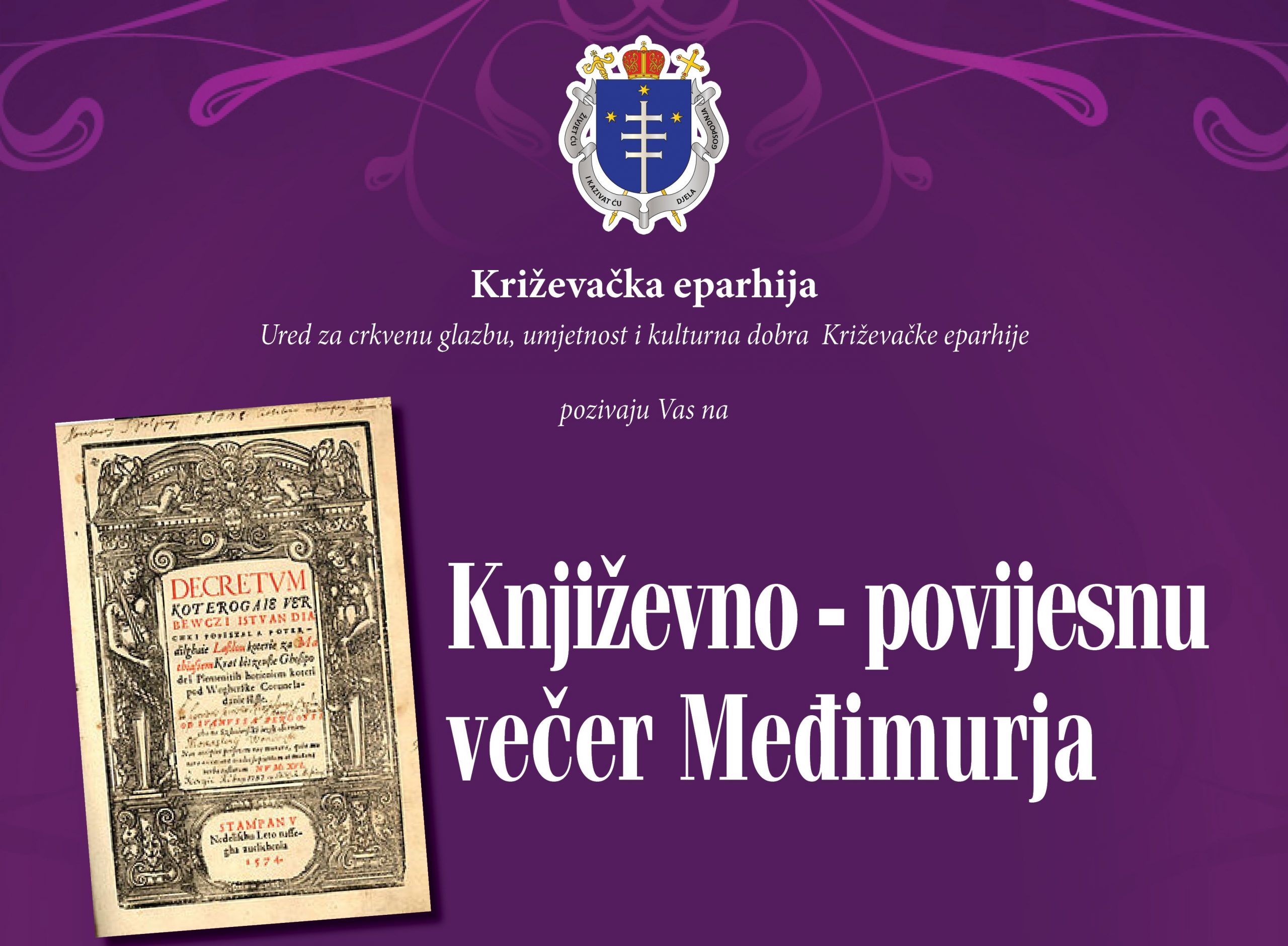 Ured za crkvenu glazbu, umjetnost i kulturna dobra Križevačke eparhije priređuje književno-povijesnu večer Međimurja na kojoj će sutra, u četvrtak 7. studenoga, u Konzistorijalnoj dvorani na prvom katu biskupske rezidencije o kajkavskoj književnosti govoriti prof. dr. Alojz Jembrih i prof. Vladimir Mihaljević.