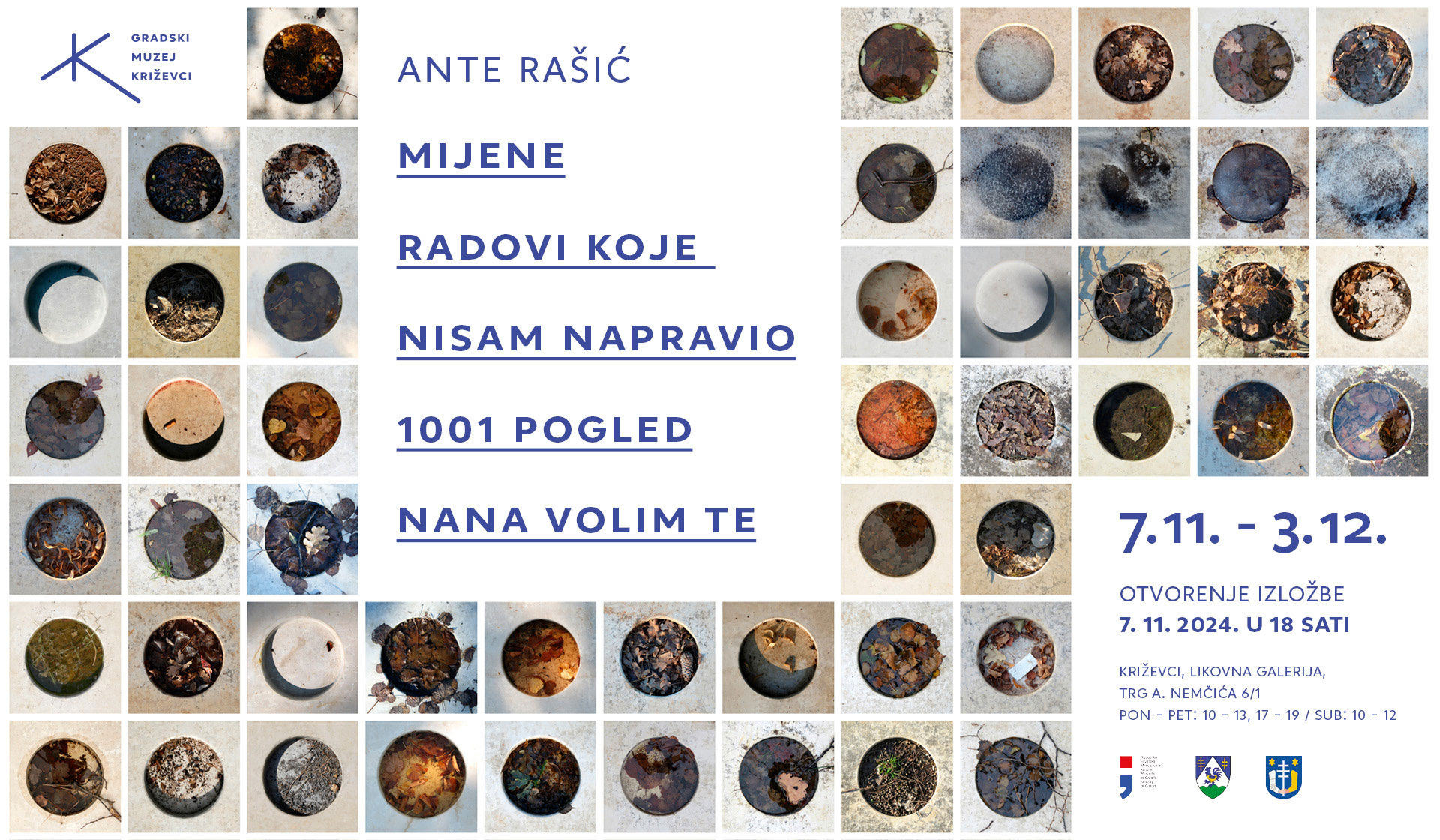 Realizacija izložbe sufinancirana je sredstvima Ministarstva kulture i medija Republike Hrvatske, Koprivničko-križevačke županije, Grada Križevaca. Otvorenje izložbe je danas u 18 sati.
