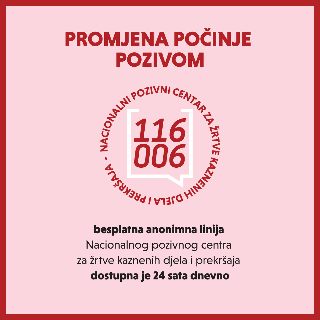 “Koristimo priliku kako bismo vam poručili: Niste same! Niste sami! Ako ste žrtva nasilja ili bilo kojeg drugog kaznenog djela ili prekršaja, neovisno jeste li prijavili isto policiji ili ne, imate mogućnost nazvati besplatnu i anonimnu 116 006 liniju na kojoj možete dobiti pravne i praktične informacije, ali i osobu koja će vas saslušati i pružiti podršku“, poručuje Maja Štahan iz Nacionalnog pozivnog centra za žrtve kaznenih djela i prekršaja s molbom za dijeljenje blagdanske poruke podrške žrtvama i svjedocima kaznenih djela i prekršaja.