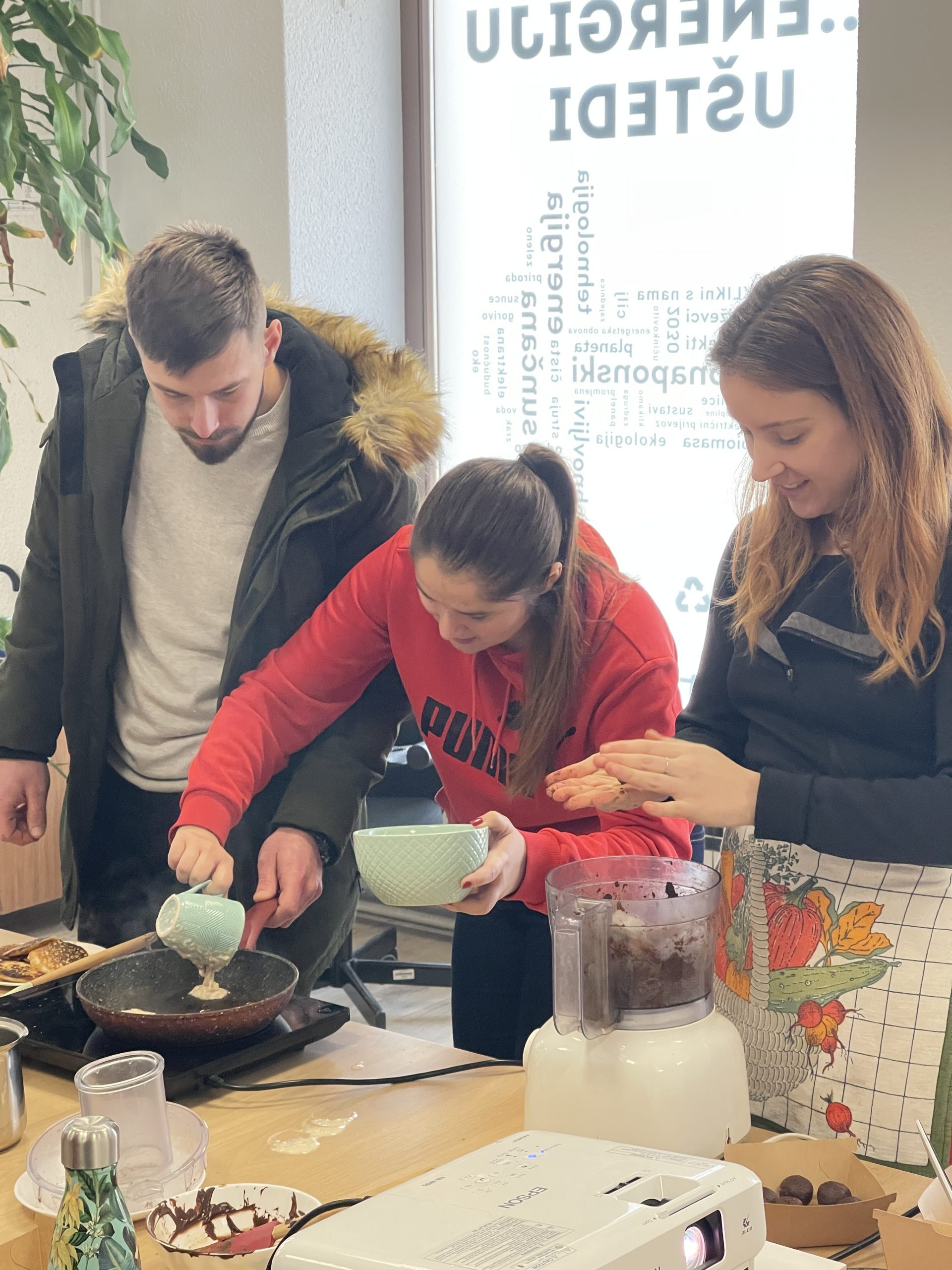 Radionica se održala u prostorijama KLIK-a, a sudionici su donijeli ostatke hrane koje su željeli ponovno iskoristiti. Martina je pokazala kako od ostataka blagdanskih jela stvoriti nova, ukusna i kreativna jela. Uz praktične demonstracije, podijelila je vrijedne savjete o smanjenju bacanja hrane, pravilnom skladištenju i zamrzavanju koje štedi novac, kao i korisne informacije o sigurnosti namirnica. Od ostataka voća sudionici su pripremali palačinke, a od starih kolača nastale su neodoljive kuglice.