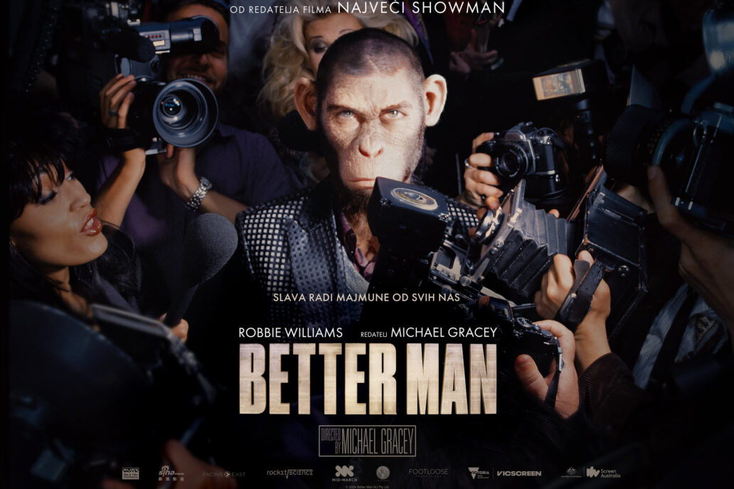 Večeras u 20 sati prikazuje se film Bolji čovjek, redatelja Michael Gracey (poznat po hitu The Greatest Showman). Inovativna je to biografska priču o životu pop zvijezde Robbieja Williamsa, ispričanu na način koji nitko ne očekuje. Bolji čovjek prati sve ključne trenutke Williamsove karijere, od djetinjstva do roba, turbulentnih odnosa i borbe s ovisnostima, uz nevjerojatne vizualne efekte i emotivne prizore. Better Man je neobično iskrena i intimna priča u kojoj Williams otkriva svoje najdublje demone. Film donosi sve ono što Robbie Williams najbolje radi – sjajnu zabavu, nevjerojatnu scensku prisutnost i dirljivu priču koja ostaje s vama dugo nakon odjavne špice.