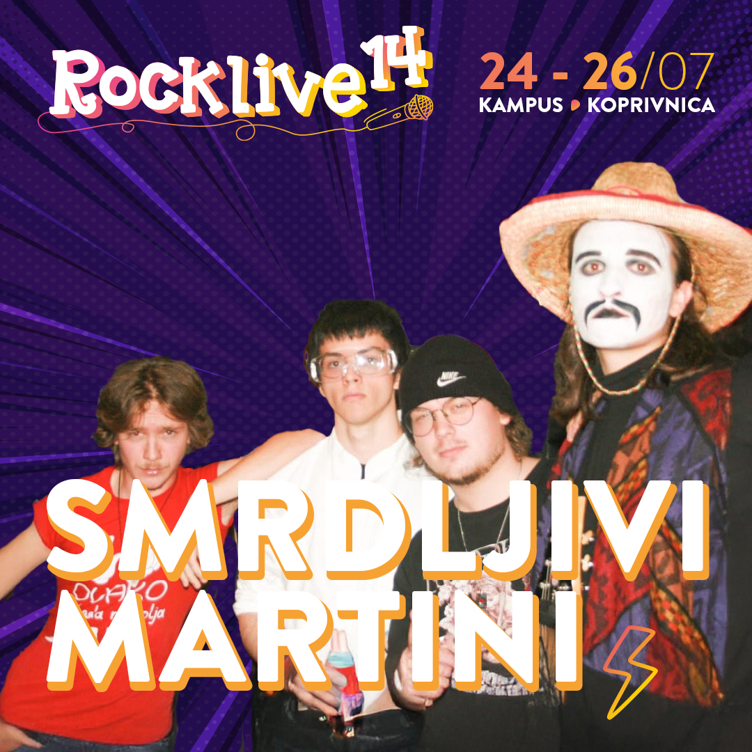 Na krilima odličnog novog albuma Risset, za dozu žestoke svirke zadužena će biti grupa Kryn, čiji je povratak na scenu oduševio metal publiku. A da RockLive podržava one koji tek trebaju zasjati na domaćoj sceni potvrđuju i posljednje dvije grupe s ovog popisa. TereT i Smrdljivi Martini jedna su od najistaknutijih imena projekta Superval, a zašto ih mlada publika toliko voli pokazat će ovog ljeta u Koprivnici.
