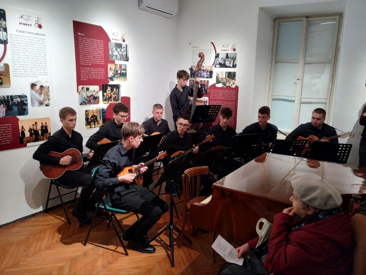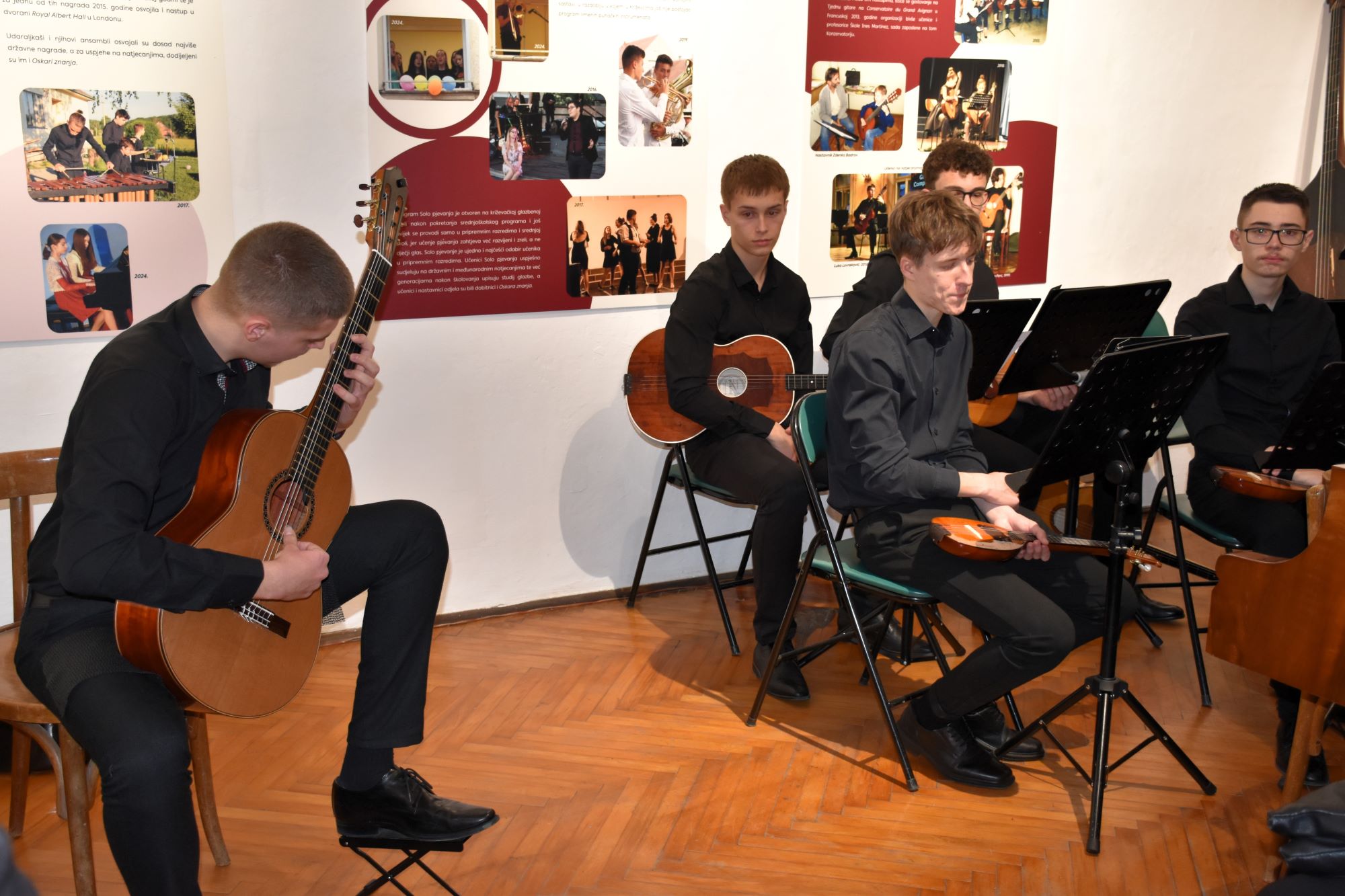 Posjetitelji sve to mogu razgledati do 15. veljače, a u jednoj od galerijskih prostorija mogu uživati u snimci vjerojatno najvećeg i najzahtjevnijeg umjetničkog projekta škole u svih 80 godina postojanja – Carmini Burani Carla Orffa koju su prije deset godina izveli učenici, bivši učenici i nastavnici škole pod ravnanjem maestra Vladimira Kranjčevića.