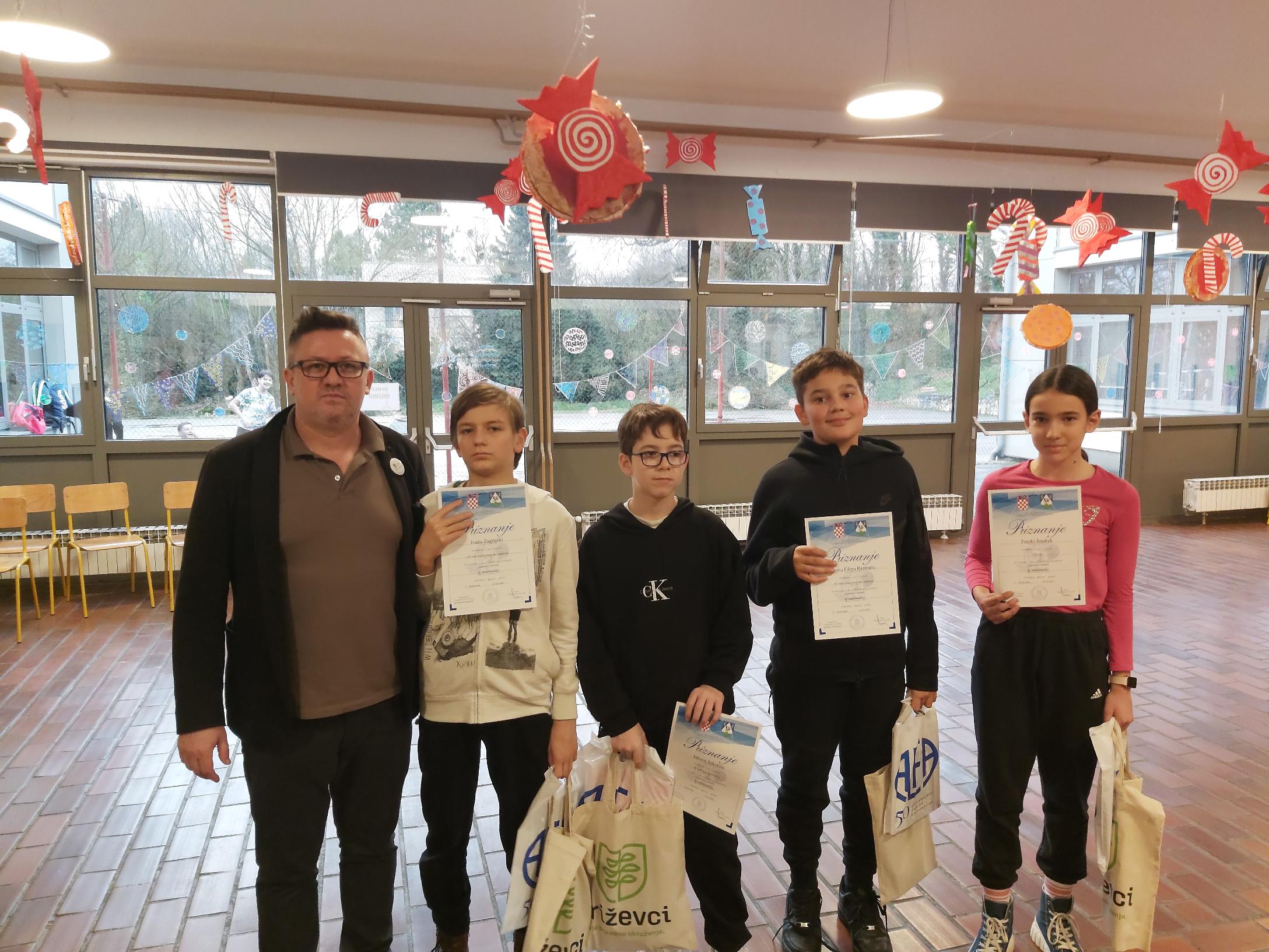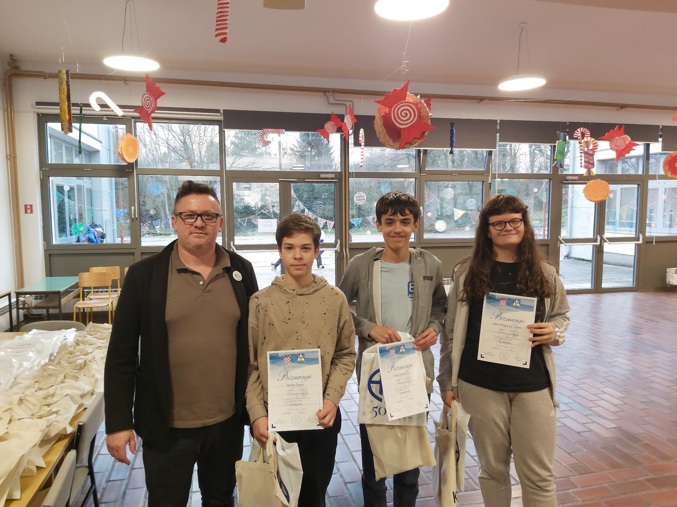 Među sedmašima drugo mjesto je osvojio Marko Šijan, 4. Gabriel Furmeg, 6. Ivan Babić i Jan Blašković, 8. Sara Radiček. Svi su učenici OŠ “Vladimir Nazor” i mentorice su im Jasna Kašik i Natalija Radotović Maksić. U kategoriji osmih razreda peti je bio Luka Novosel Glavočević iz Modeca, mentor je Goran Ljaljić.