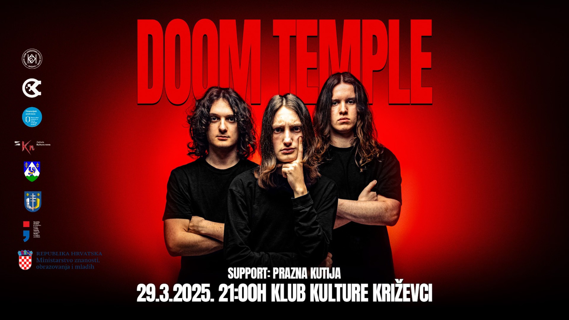 Karlo Lugarić (bubanj), Roko Ivan Divić (gitara) i Karlo Orešić (bass i vokal) kroz novi Doom Temple u ime generacije Z isporučuju svježu dozu eksplozivne energije umjesto krika prema nestabilnom društvu u kojem živimo. Svježim autorskim riffovima i britkim kritičkim tekstovima Doom Temple slušateljima i publici uživo nikad glasnije izravno prenosi emocije i frustracije svojeg naraštaja.