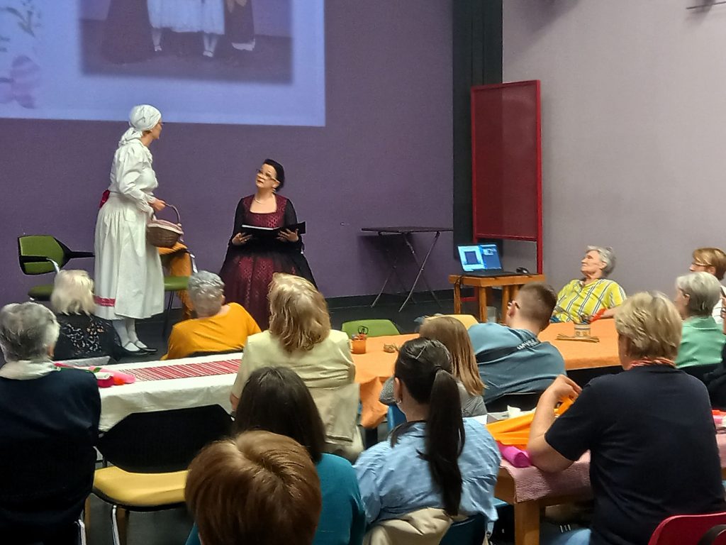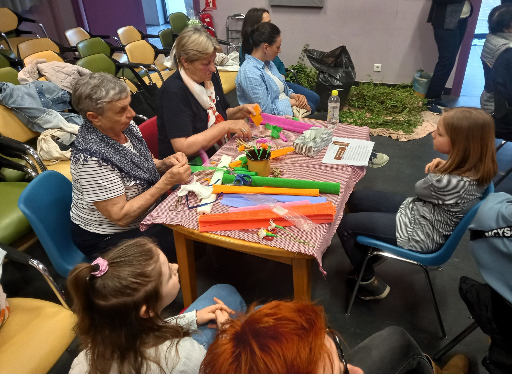 Radili su se vjenčići od grančica bršljana, vrbe, breze i pleli s cvijećem koje su polaznici sami izradili od krep papira. Dok su marljive ruke polaznika radile ukrase, članice Udruge “Magda i Luisa” prikazale su kratku predstavu “Dari letne večerke”.
