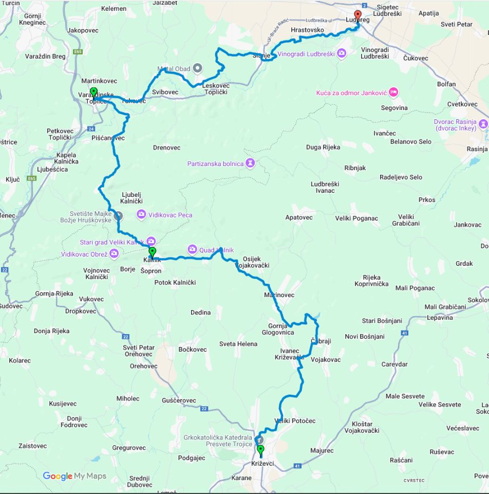 Ova najnovija dionica duga je gotovo 62 kilometra, s početkom u Križevcima, kroz Kalnik do Varaždinskih Toplica i završava u Ludbregu gdje se spaja na trasu Camino Podravina.