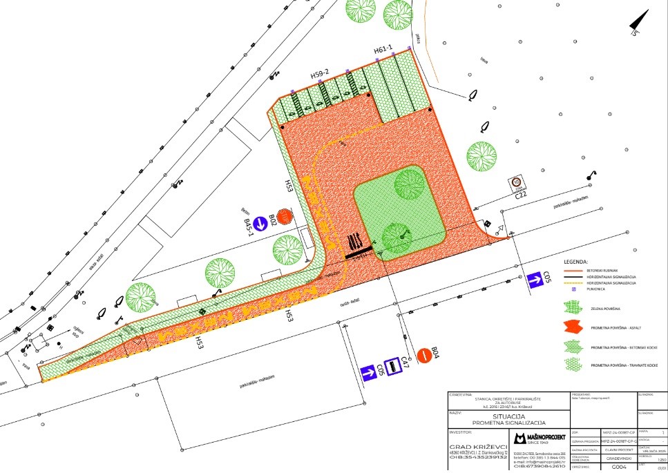 Okretište i punionica gradit će se na parceli između već izgrađenog parkirališta za bicikle (nasuprot željezničkog kolodvora) i parka u izgradnji u Tomislavovoj ulici. Investitor, Grad Križevci, prethodno je naručio glavni projekt za okretište koji je morao imati tri parkirališta za autobuse i najmanje šest punionica za električne automobile. Prema projektu koji je izradio Mašinoprojekt-biro za strojogradnju i energetiku, stajališta za autobuse opremit će se tipskim nadstrešnicama.