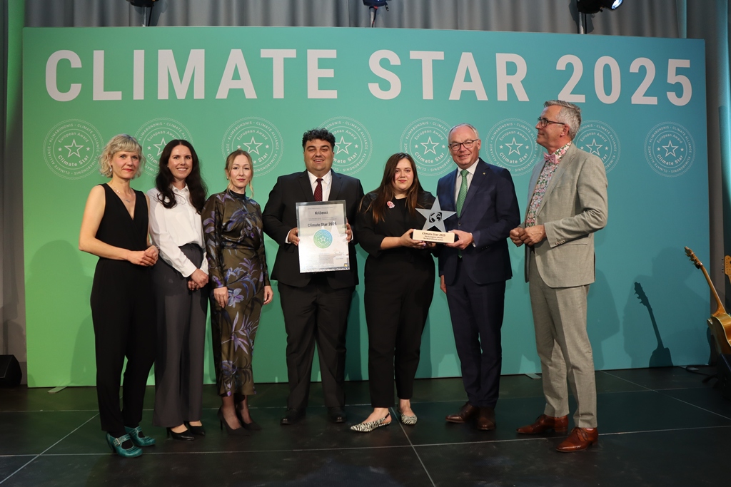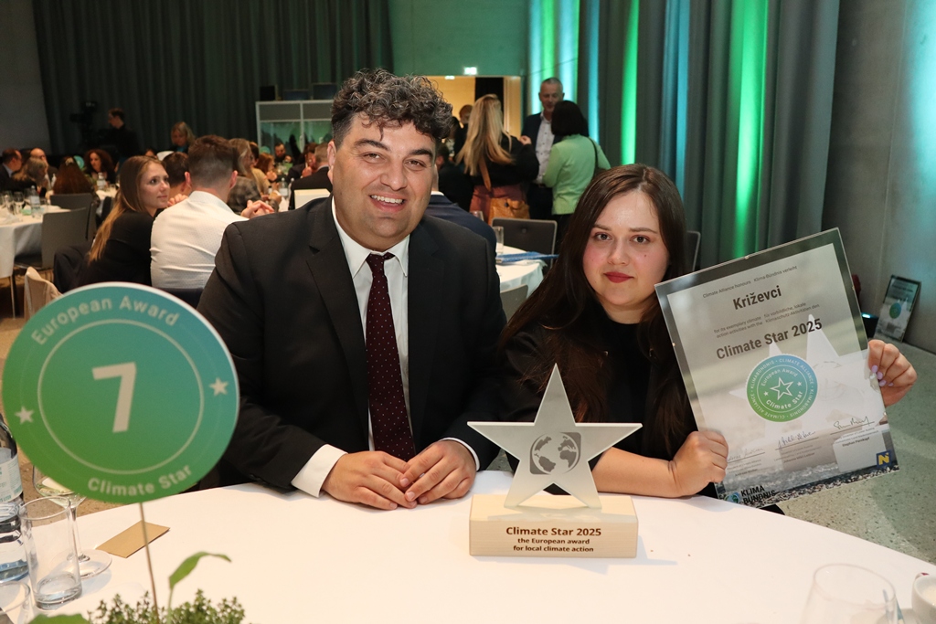 Predstavnici Grada Križevaca gradonačelnik Mario Rajn, savjetnica za energetsku učinkovitost, zaštitu okoliša i prostorno uređenje Ivana Dubravec i direktorica tvrtke Križevci energija Katarina Zidarić te voditeljica projekata u KLIK-u Martina Nemčić, preuzeli su jučer u Bečkom Novom Mjestu nagradu Klimatska zvijezda koju Klimatski savez, najveće europsko udruženje gradova i regija posvećeno zaštiti klime, dodjeljuje od 2002. za projekte koje provode članice tog udruženja diljem Europe. Križevcima je nagrada dodijeljena za uspostavu Energetsko-klimatskog ureda, uz još 13 gradova i dvije regije koji su primili nagrade za svoje projekte.