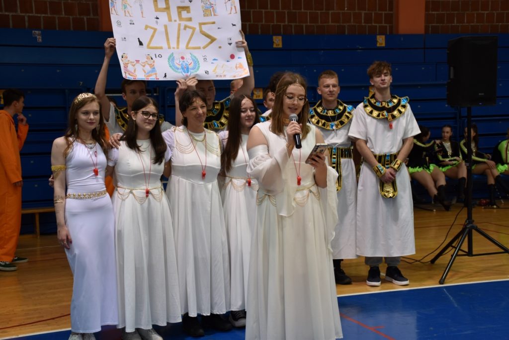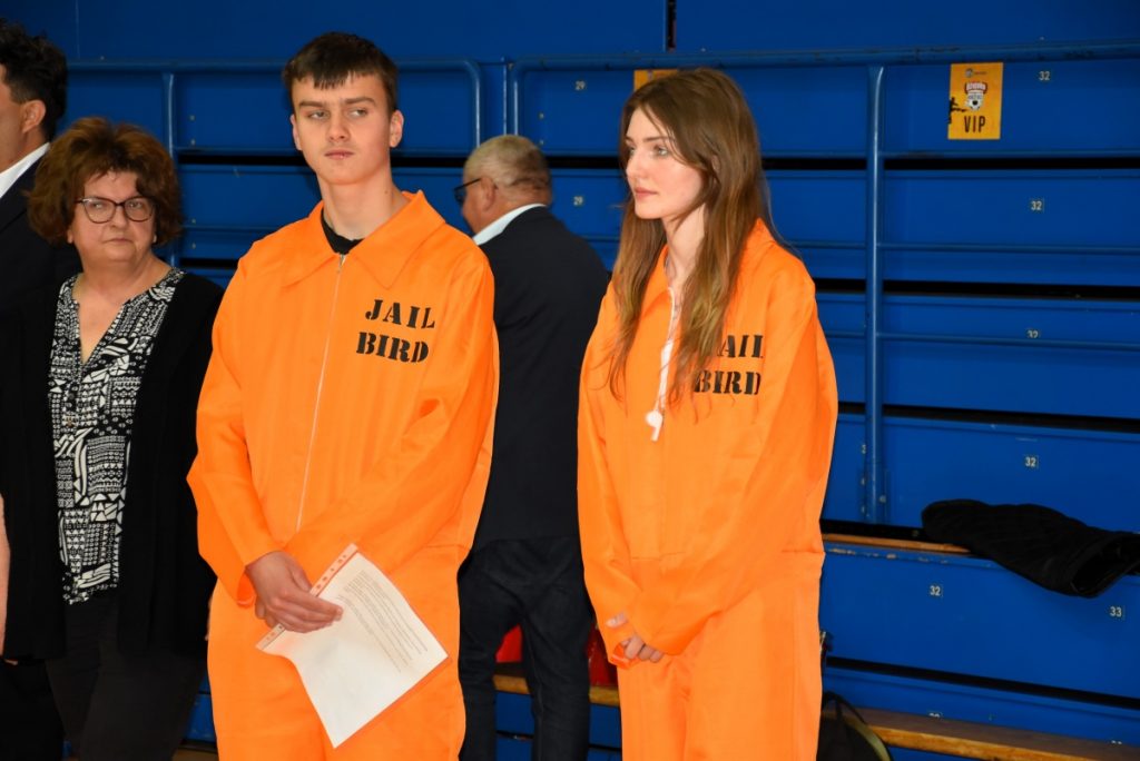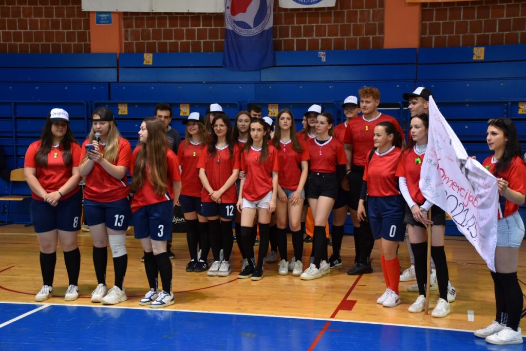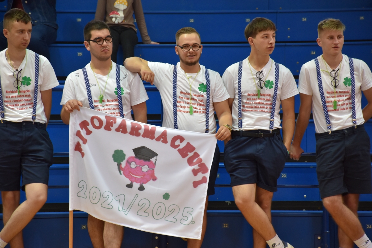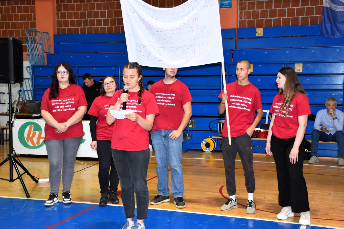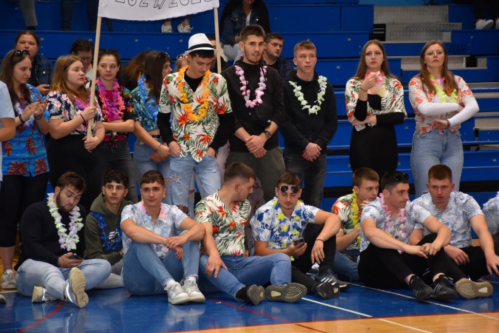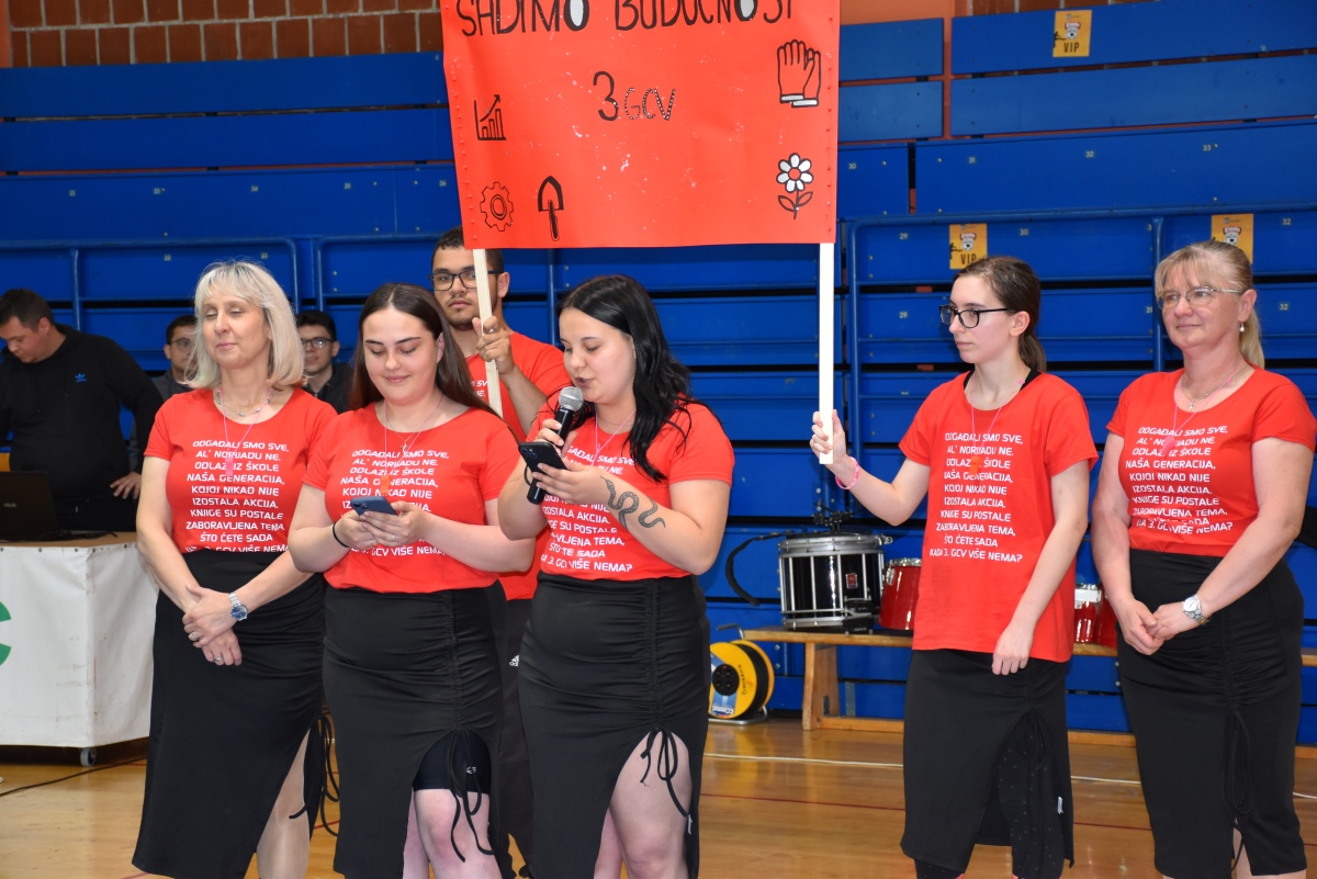 Ribiči, stjuardese i piloti, zatvorenici uz razrednicu policajku, pripadnici drevnih i suvremenih naroda, građevinari i sportaši – to su bile teme kostima ovogodišnjih maturanata koji su se jučer, umjesto na Strossmayerovom trgu, zbog lošeg vremena od škole simbolično oprostili u sportskoj dvorani. Prigodnim govorima obratili su im se ravnatelji Ivan Peklić, Toni Svoboda, Gordana Juran Ratković i Branka Špoljar, poželjeli su im sreću na ispitima, u budućem školovanju i pronalasku posla, a uime Grada im se obratio gradonačelnik Mario Rajn.