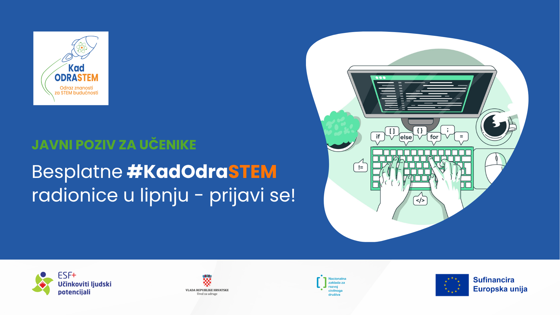 Kraj školske godine uz STEM radionice! Pogledaj naš kalendar događanja i uključi se u lipanjske aktivnosti projekta #KadOdraSTEM za osnovce i srednjoškolce.