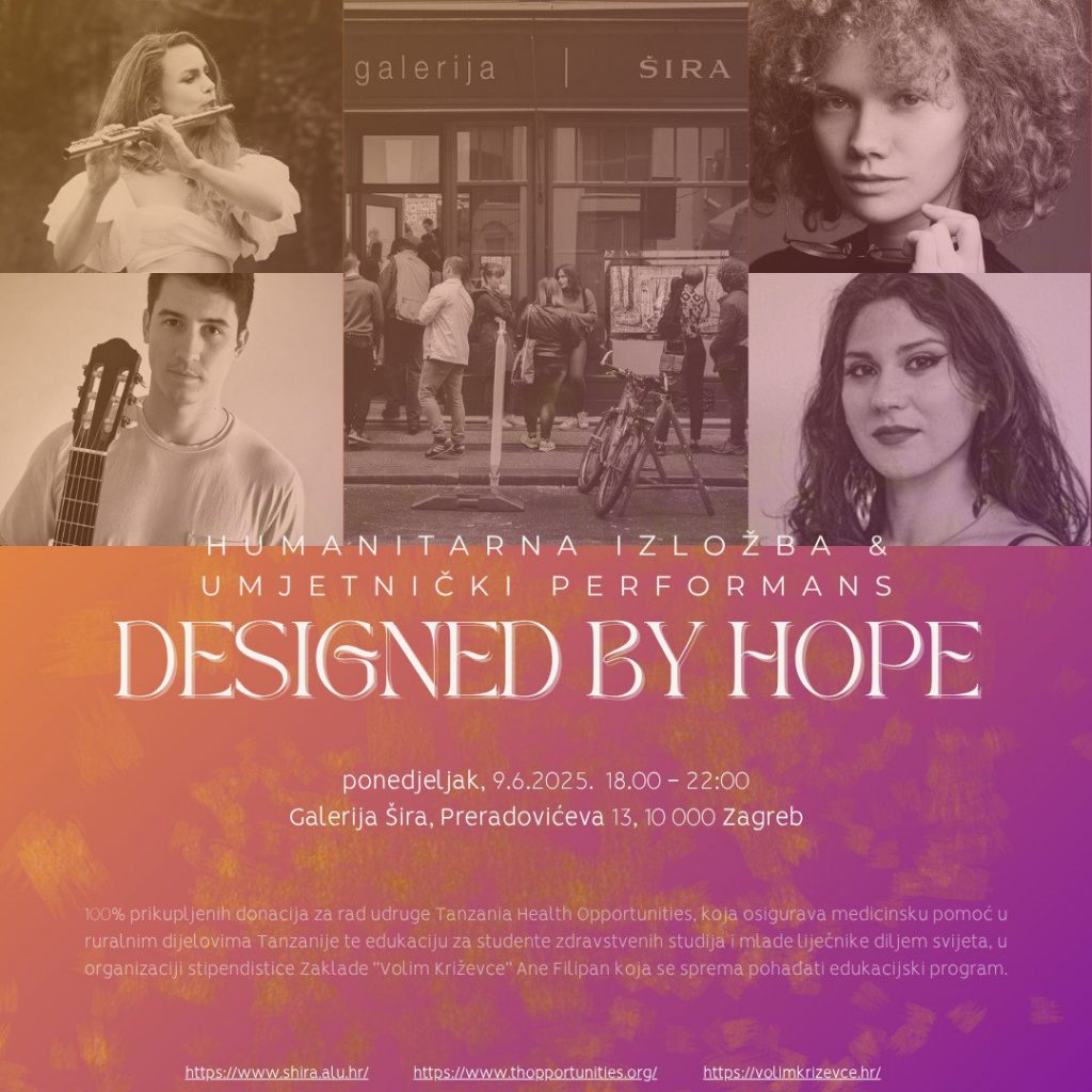Zaklada za lokalni razvoj i solidarnost “Volim Križevce” sa zadovoljstvom poziva na jedinstveni humanitarni događaj “Designed by Hope”, večer koja spaja likovnu umjetnost, dizajn, performans i glazbu – s plemenitim ciljem! Cijela večer posvećena je podršci radu udruge Tanzania Health Opportunities (THO), koja kroz edukacijske programe pruža medicinsku pomoć ruralnim zajednicama Tanzanije.