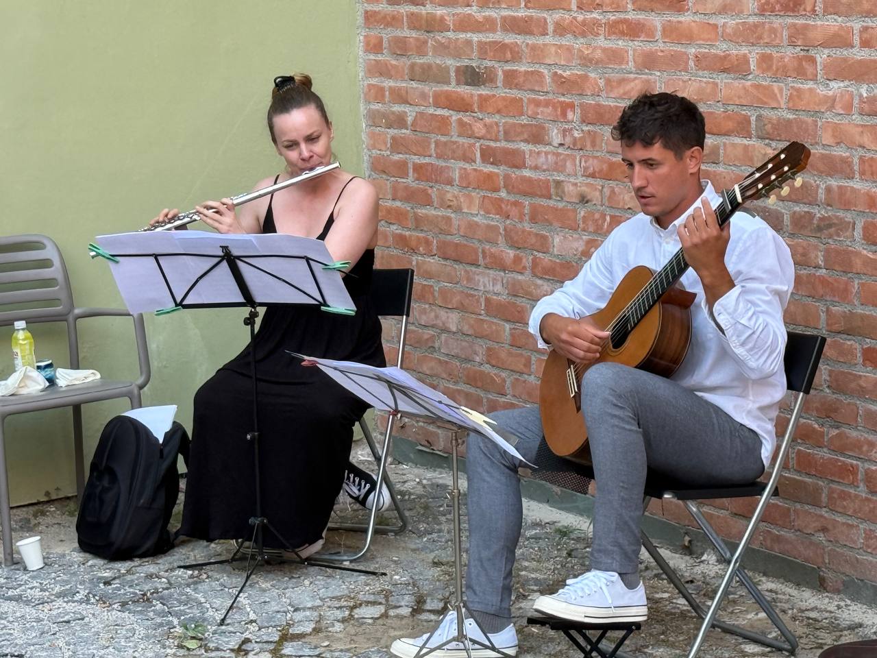U glazbenom dijelu večeri predstavili su se mladi virtuozi Latica Cameron na flauti, inače profesorica flaute u Glazbenoj školi Alberta Štrige u Križevcima, i Petar Kvesić na gitari, profesor u Glazbenoj školi Pavla Markovca u Zagrebu, a tijekom njihovih izvedbi umjetničkim performansom oslikavanja velikog platna predstavile su se mlade umjetnice Nika Vrbica, magistrica modnog dizajna i slikarstva, te Astrid Jakšić, mlada slikarica koja je diplomirala s nagradom Akademijskog vijeća 2024. godine na diplomskom studiju Likovne kulture na Akademiji likovnih umjetnosti u Zagrebu.