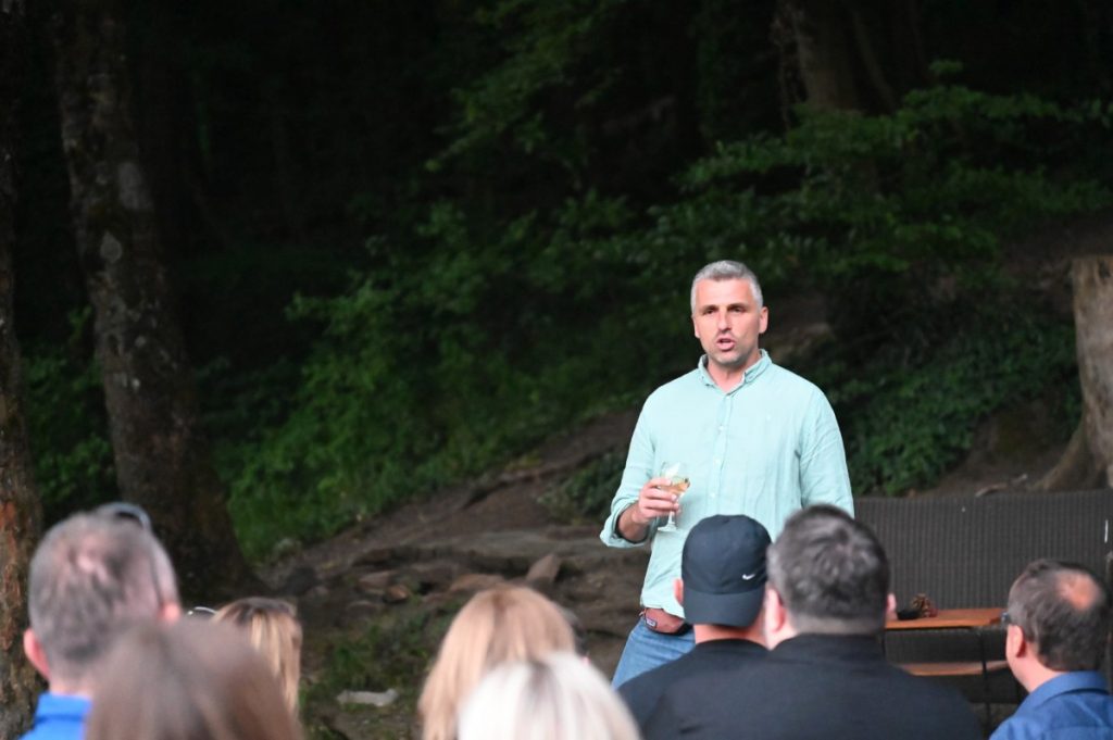 Predstavivši ulagače te zahvalivši svim zaposlenicima čiji rad i trud čine ovu priču kvalitetnom, okupljenima se također obratio i direktor tvrtke Osmi zub Domagoj Račić: “Neki su na vlasti, neki su u oporbi, ali želim naglasiti da je Planinarac tu za sve vas! Ovdje smo prije svega ljudi, okupljeni oko zajedničke želje da se družimo, razgovaramo i dijelimo trenutke uz čašu vina ili gutljaj Kalničkog piva.”