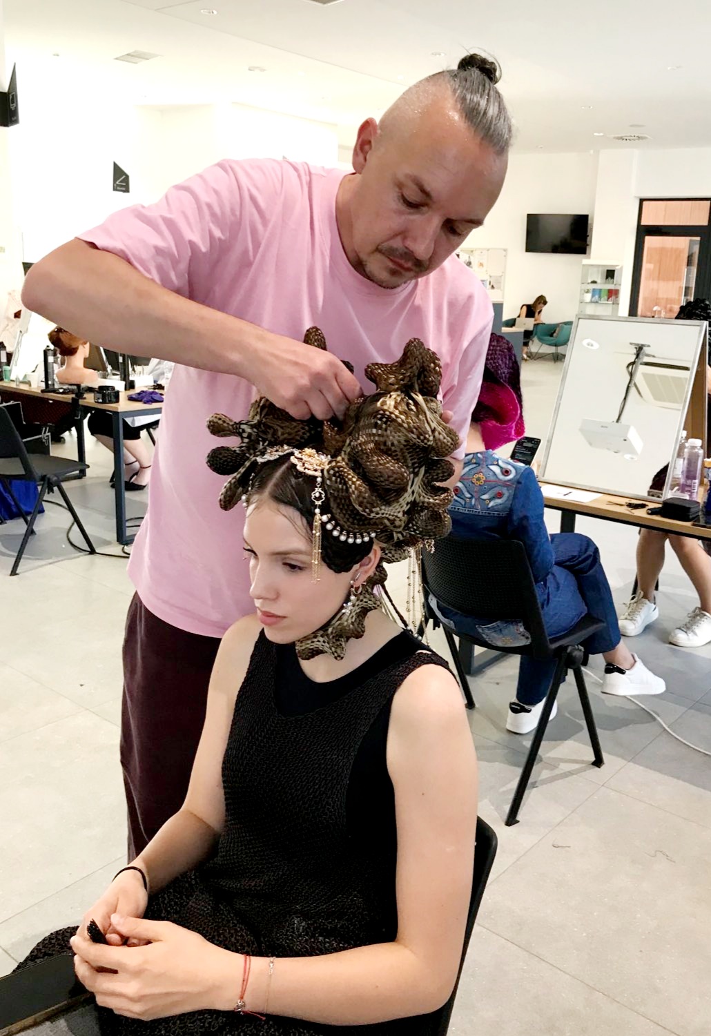 “Oglavlja su rađena od kose koja je pletena od više stotina pramenova za svaku frizuru. Ukrašena su kristalnim elementima, biserima i perlicama kako bi što bolje naglasila modele koje sam predstavio. Mario se godinama predstavlja uz moje kolekcije i nenadmašno ih nadopunjuje u potpunu cjelinu doživljaja pravih modnih revija, kakve su se nekad mogle gledati na velikim svjetskim modnim događanjima“, objašnjava nagrađivani križevački dizajner.
