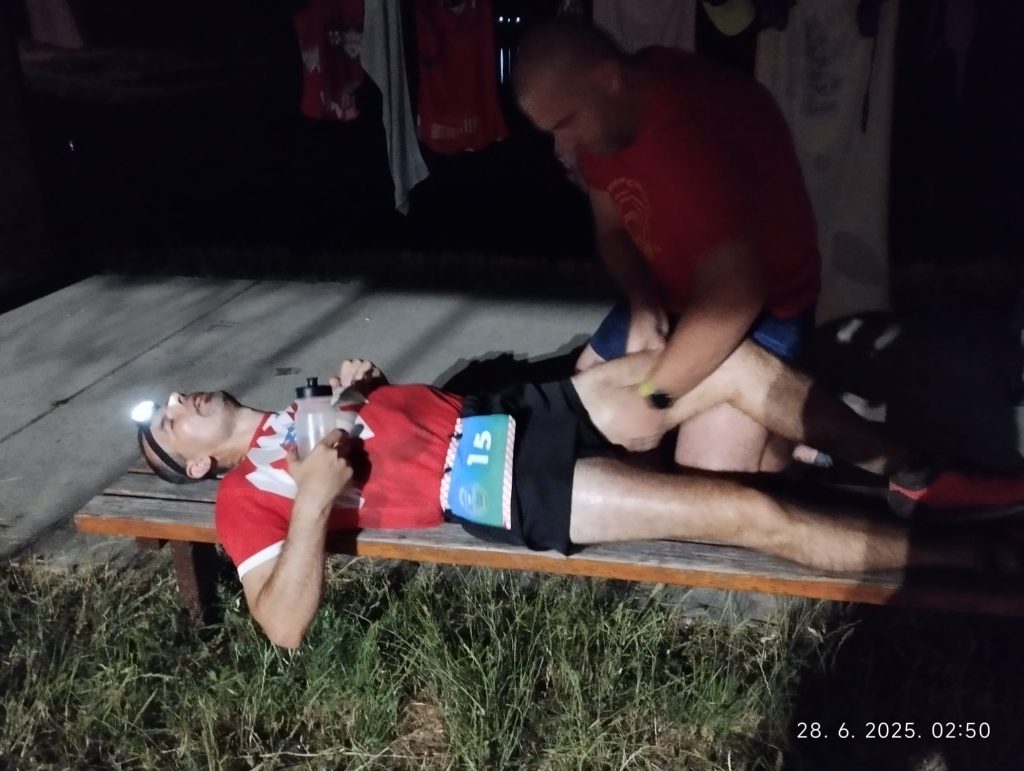 “Noge su bile kao balvani, muka mi je bila od jela i pića. U 8. krugu smo promijenili taktiku i neke dijelove smo više hodali, što se pokazalo kao dobitna kombinacija. Borisa sam ispratio u 10. krugu i od tada sluške u uši i muzika do kraja utrke“, kaže Toni. Mi drugi smo do tad već iscrpili svoje rezerve i završili trku, a dok su neki spavali (jer već je odavno prošla ponoć), Alen Lukinović, Nina iz Bjelovara i Zvonimir Mesić brinuli su o Toniju – masirali noge i leđa, točili napitke i nudili hranu.