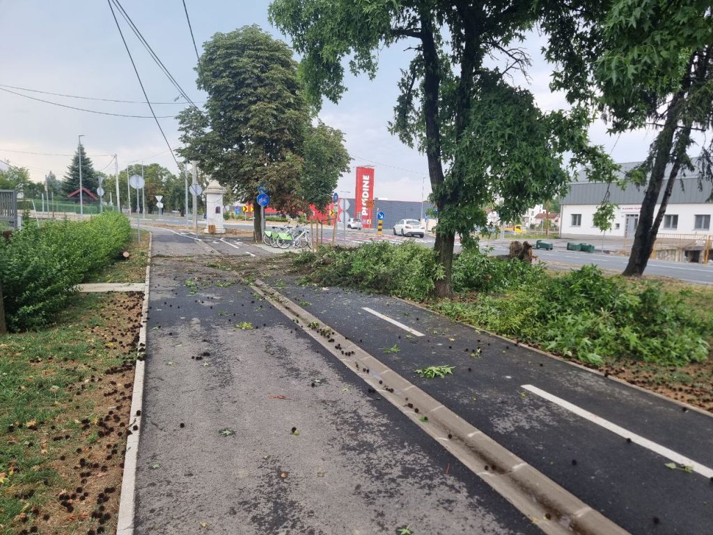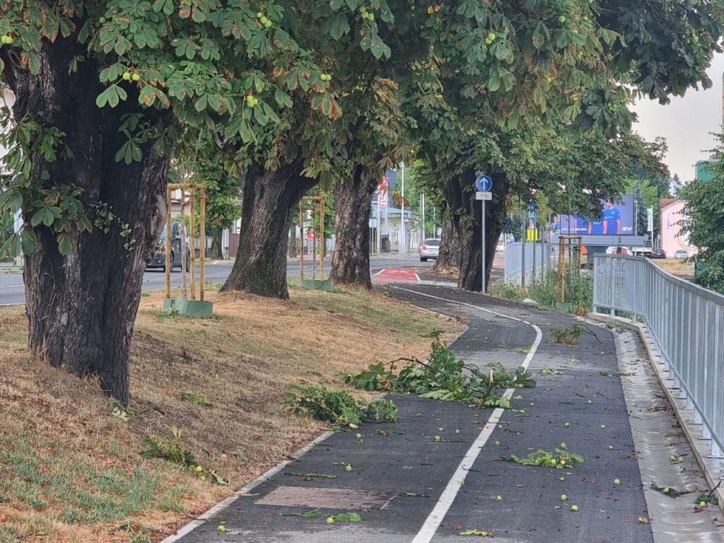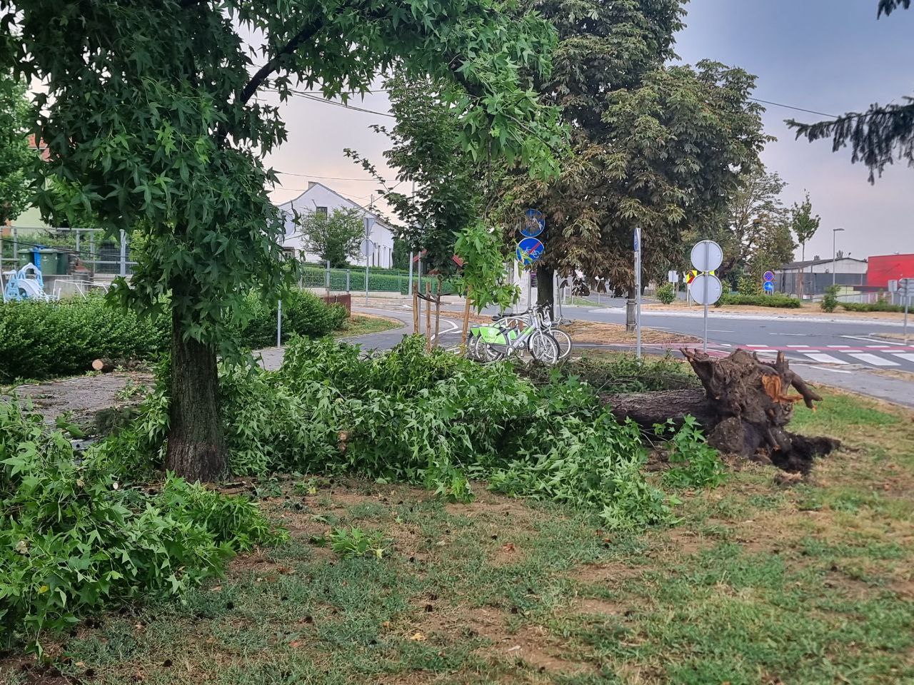 Naša je kamera snimila kadrove odlomljenih grana u Gornjem i Donjem gradu, uz iskrivljeni prometni znak kod kružnog toka u Gornjem gradu te stablo koje je kod Šumarije palo na kablove. Križevački vatrogasci saniraju štetu na terenu koji obilaze i policijski službenici.