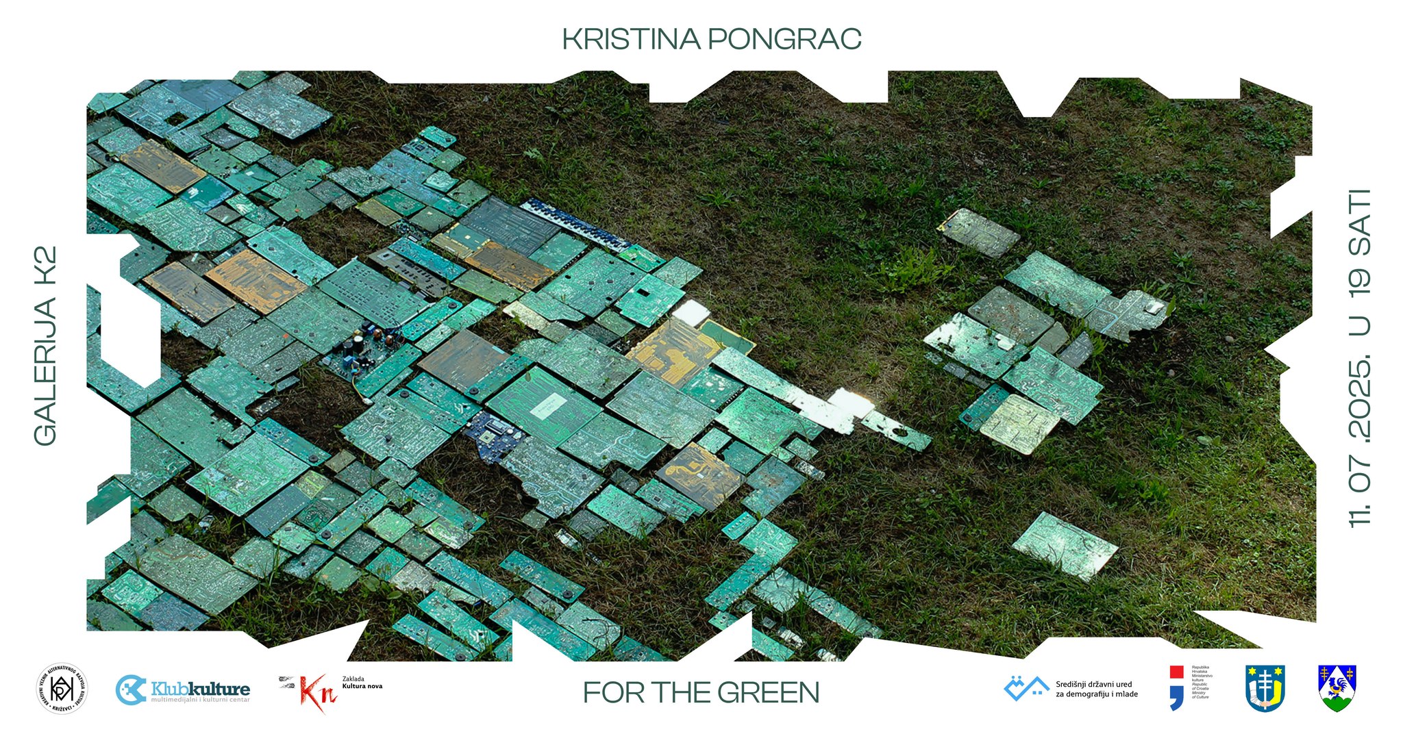 Udruga K.V.A.R.K. s ponosom najavljuje izložbu For the green, najnoviji projekt višestruko nagrađivane multidisciplinarne umjetnice Kristine Pongrac, koji će biti predstavljen tijekom srpnja 2025. u Galeriji K2. Ova ekološki angažirana izložba donosi retrospektivni presjek autoričina rada kroz posljednjih deset godina, kroz medije poput performansa, intervencija u prostoru, instalacija, monotipija i video/foto dokumentacije.