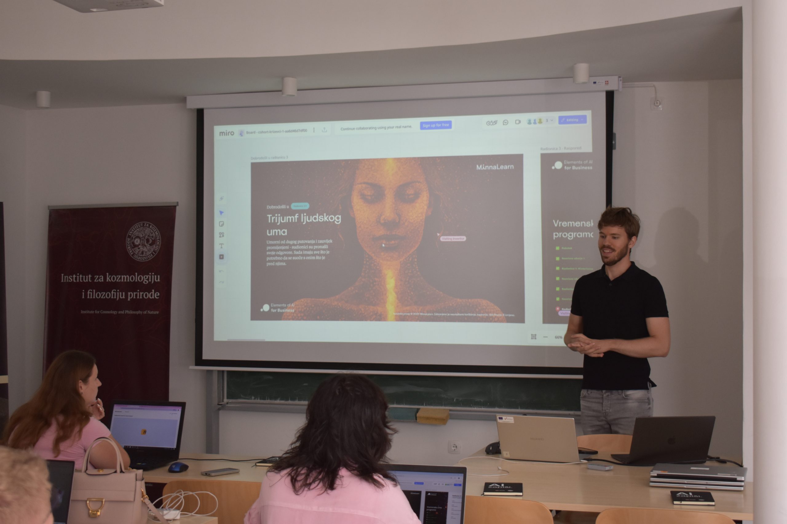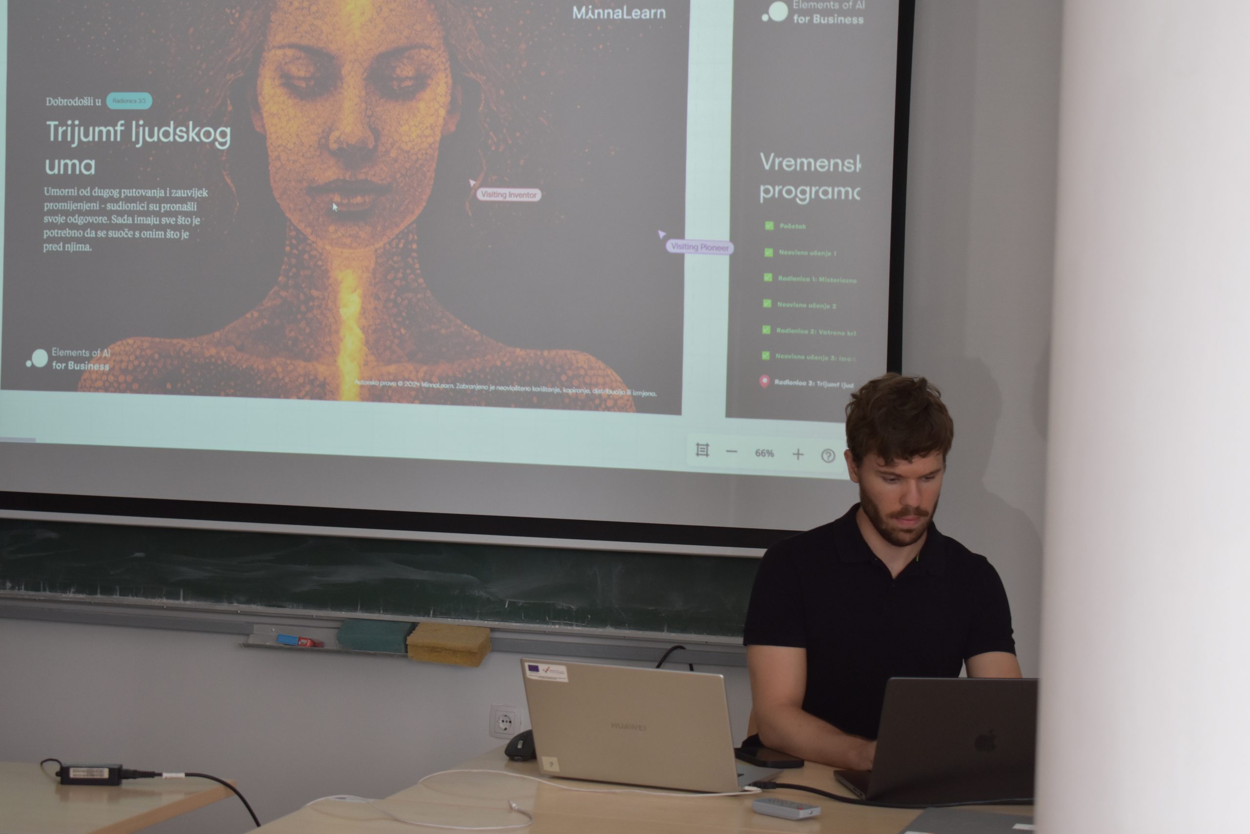 Kroz četiri radionice, polaznici su slušali o osnovama AI-ja, načinima njegove upotrebe, strojnom učenju i neuronskim mrežama, dok je tečaj završio prezentacijom eksperimenata polaznika koji su koristili AI na razne načine. Neki od eksperimenata polaznika prikazali su kako AI alati mogu pomoći kod pisanja projektnih prijava, planiranja putovanja, direktnog prevođenja poezije na strane jezike te u razvoju pametnih mreža s ciljem optimizacije elektroenergetskog sustava.