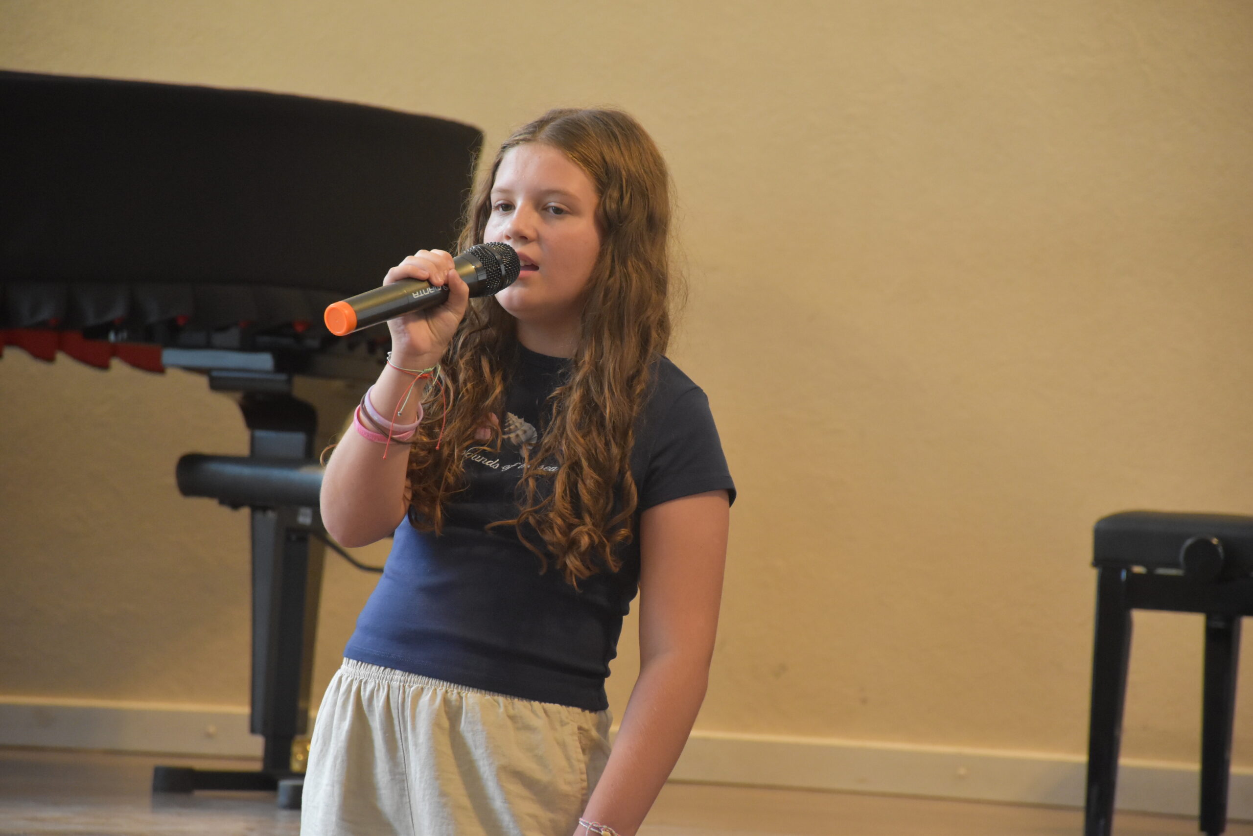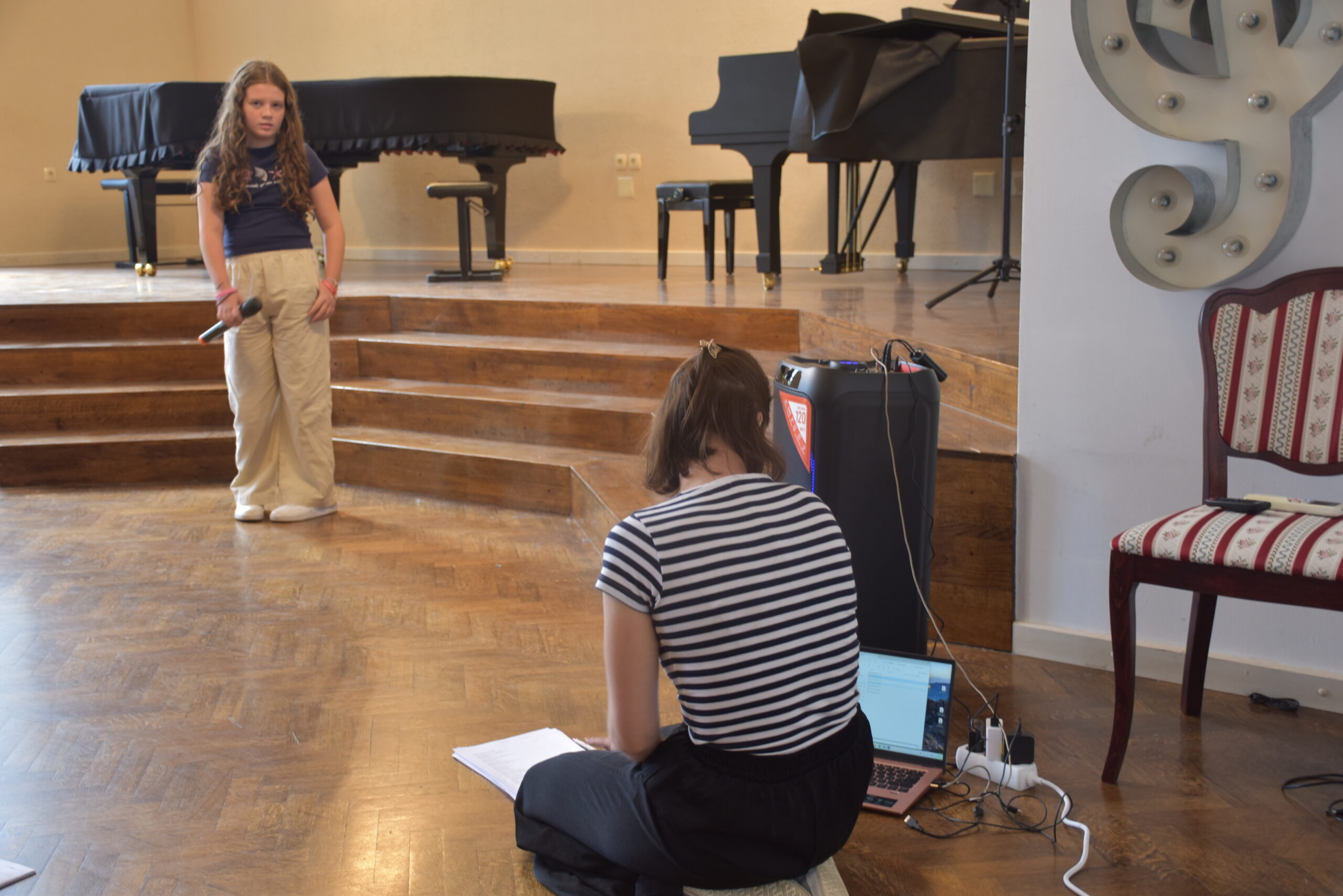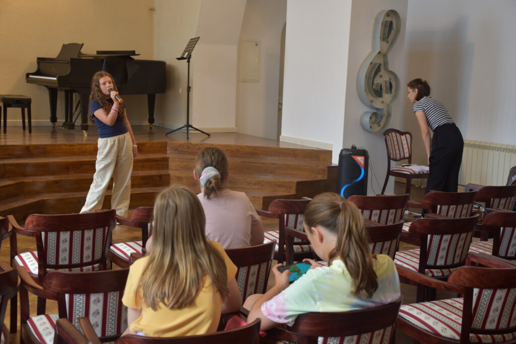 Mihaela, Tonka, Mia i Mirna već tri dana pohađaju radionice disanja i tehničkih vježbi pjevanja na Ljetnoj školi pjevanja koju prvi put organizira Glazbena škole Alberta Štrige, a vodi prof. Ana Majdak Fak. Uz stručno vodstvo profesorice Ane, djevojčice imaju i individualne satove na kojima uče pravilnu vokalnu tehniku i kako ispravno pjevati uz mikrofon.
