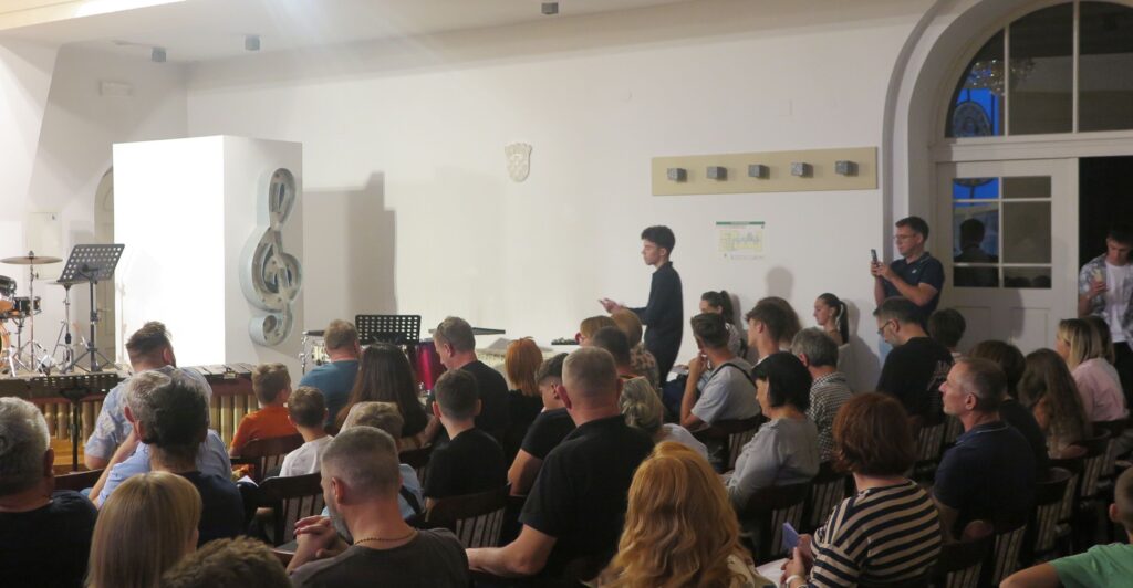 “Bilo im je lijepo svirajući se i družiti kraj plaže. Zamislite scenu – pet metara od mora, udaraljke, mjesec, predivno… I meni je pala ideja da dođu u Križevce na VUK i pokažu što su naučili u 10 dana na Braču. Pripremili su tri skladbe“, najavio ih je Konfic.