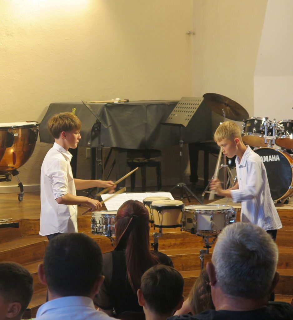 Za razliku od varaždinskih, križevački glazbenici su nastupili u većem broju i u širem rasponu generacija, od 3. razreda osnovne do 3. razreda srednje škole, svi su u klasi nastavnika prof. Štefana Đurkovića. Redom su svirali, na istim ili različitim perkusijama, Filip Blažinović (3. r. OŠ), Sven Ferenčak (3. OŠ), Jakov Aleksandar Simunović (4. OŠ), Fran Kamenečki (1. SŠ), Natko Begović (5. OŠ), Lili Marin (5. OŠ), Fran Knežević (2. SŠ), Filip Komarica (3. SŠ), opet Lili Marin i Fran Knežević i Natko Kudeljnjak (3. SŠ). S obzirom na to da su nastupali posljednjeg dana školskih praznika tijekom kojih su ipak uzeli mali predah od sviranja, svi su zvučali vrlo solidno, uvjerljivo i čisto, pokazavši da su zagrijani za ritam nove školske godine.