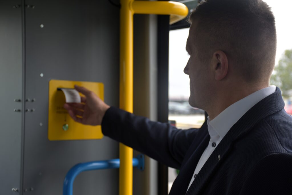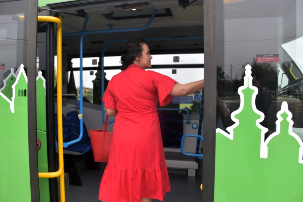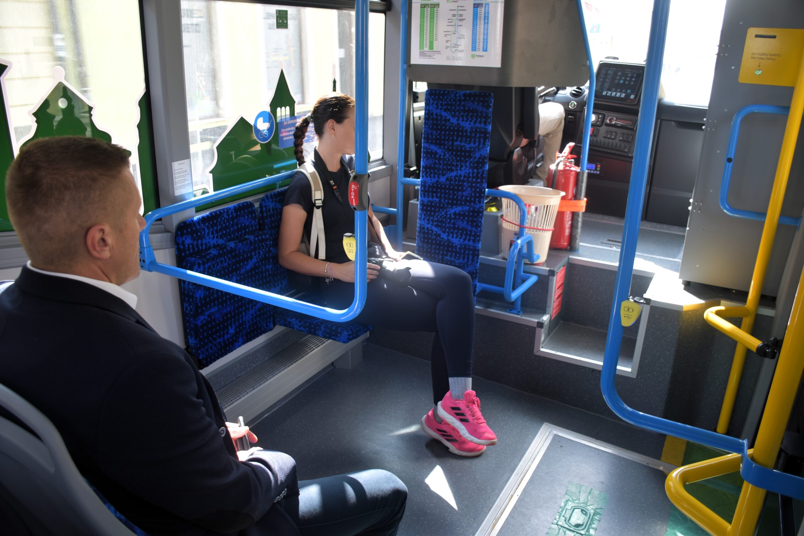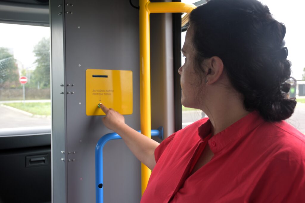 Putnici će odmah po ulasku u autobus pritiskom na tipku s desne strane preuzeti svoje besplatne karte koje su obavezne iako je vožnja besplatna, objašnjava direktorica Križevačkog poduzetničkog centra. U busu je deset sjedećih i deset stajaćih mjesta te mjesto za invalidska kolica. Do sjedala na stražnjem dijelu autobusa treba se popeti uz jednu, odnosno dvije stepenice, dok je nekoliko mjesta u razini s ulazom, namijenjena osobama koje se teže kreću. Unutrašnjost autobusa snima se kamerom, klimatizirano je, sjedala su tapecirana, a na dva mjesta su USB utičnice pa se za vrijeme vožnje mogu puniti mobiteli.