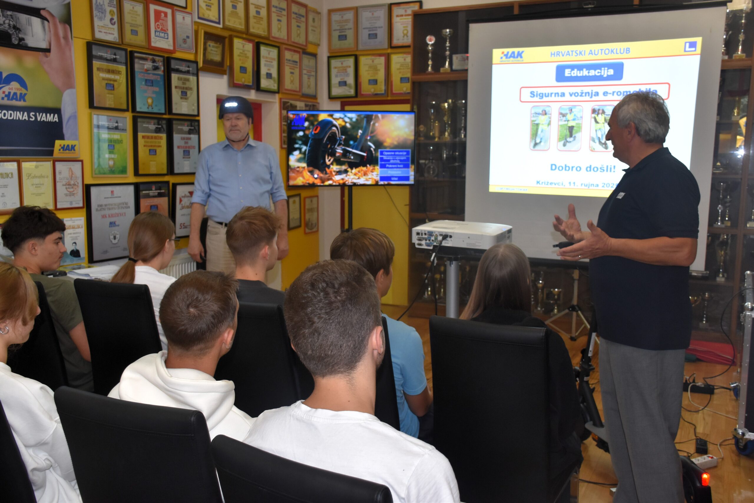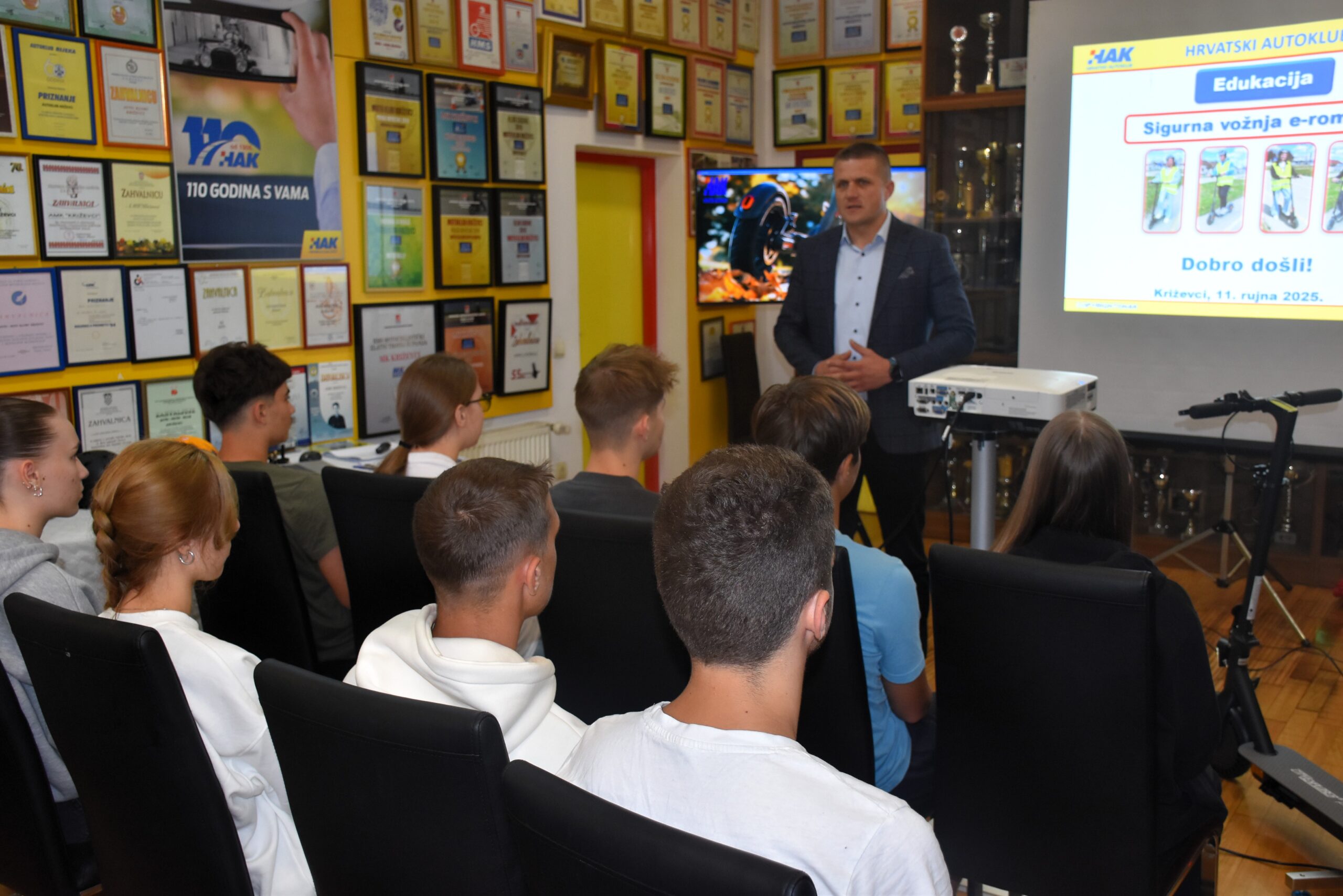 Deset učenika križevačkih osnovnih i srednjih škola prošlo je jučer u Auto-moto klubu u Križevcima preventivno-edukativni program “Sigurna vožnja e-romobilima”, koji provodi Hrvatski autoklub u suradnji s policijom. Program je nastao zbog potrebe da se djecu i mlade, korisnike električnih romobila, poduči prometnim pravilima, ali i rizicima u prometu. Novi preventivno-edukativni program sadržajno je oslonjen na Priručnik za edukaciju djece „Postani siguran vozač bicikla i električnog romobila“, koji je Hrvatski autoklub objavio 2024., a nastao je u suradnji s Ministarstvom unutarnjih poslova i Fakultetom prometnih znanosti Sveučilišta u Zagrebu. Križevci su prvi grad u kojem HAK provodi edukaciju o vožnji e-romobila, a nakon nas će obići i druge gradove.