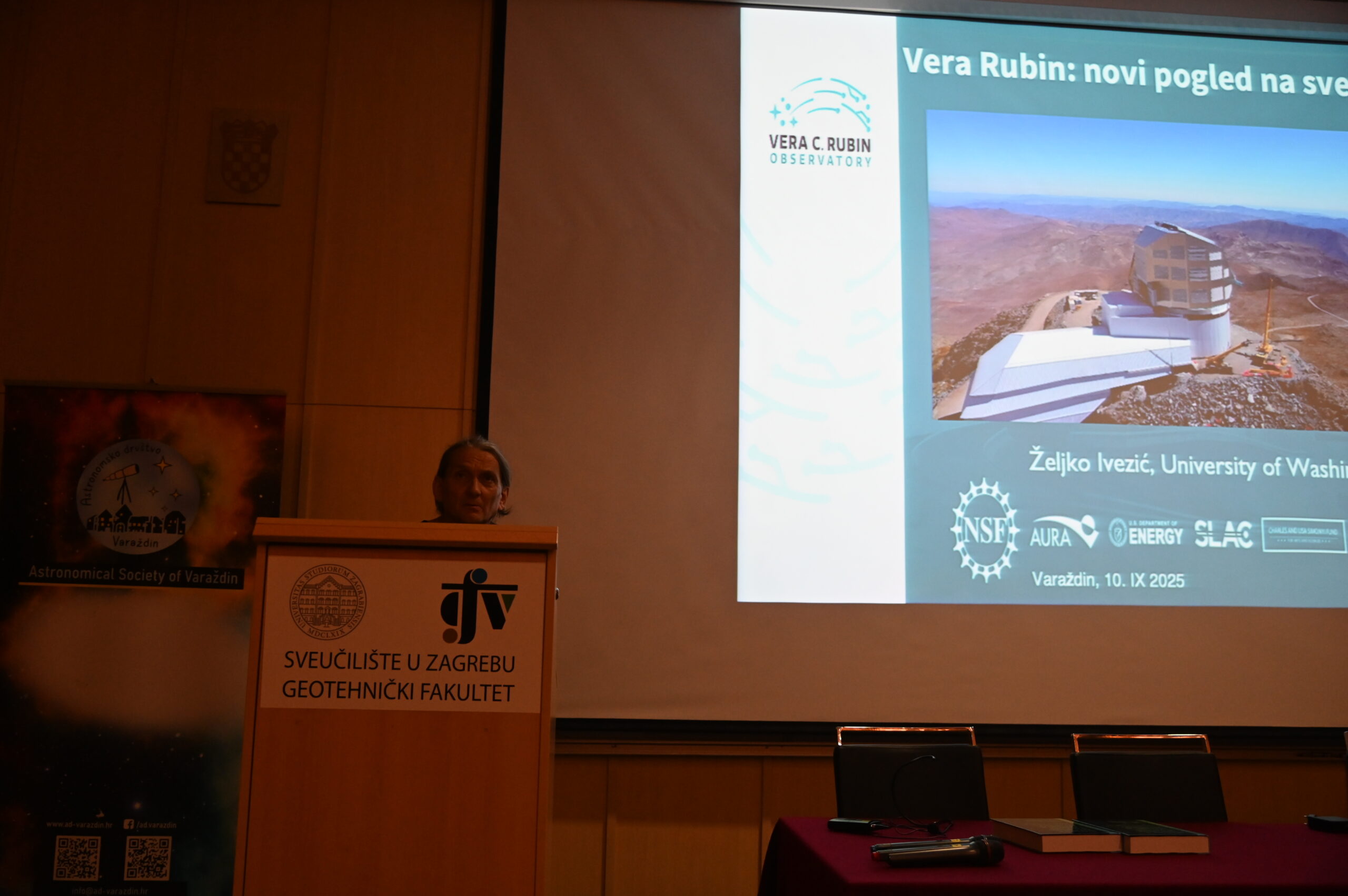 U Temi Krugova slušamo prvih petnaestak minuta predavanja prof. Željka Ivezića s Opservatorija Vera Rubin u Čileu o početku snimanja neba najboljom kamerom na svijetu koje je održao na Geotehničkom fakultetu u Varaždinu 10. rujna, u organizaciji Astronomskog društva Varaždin.